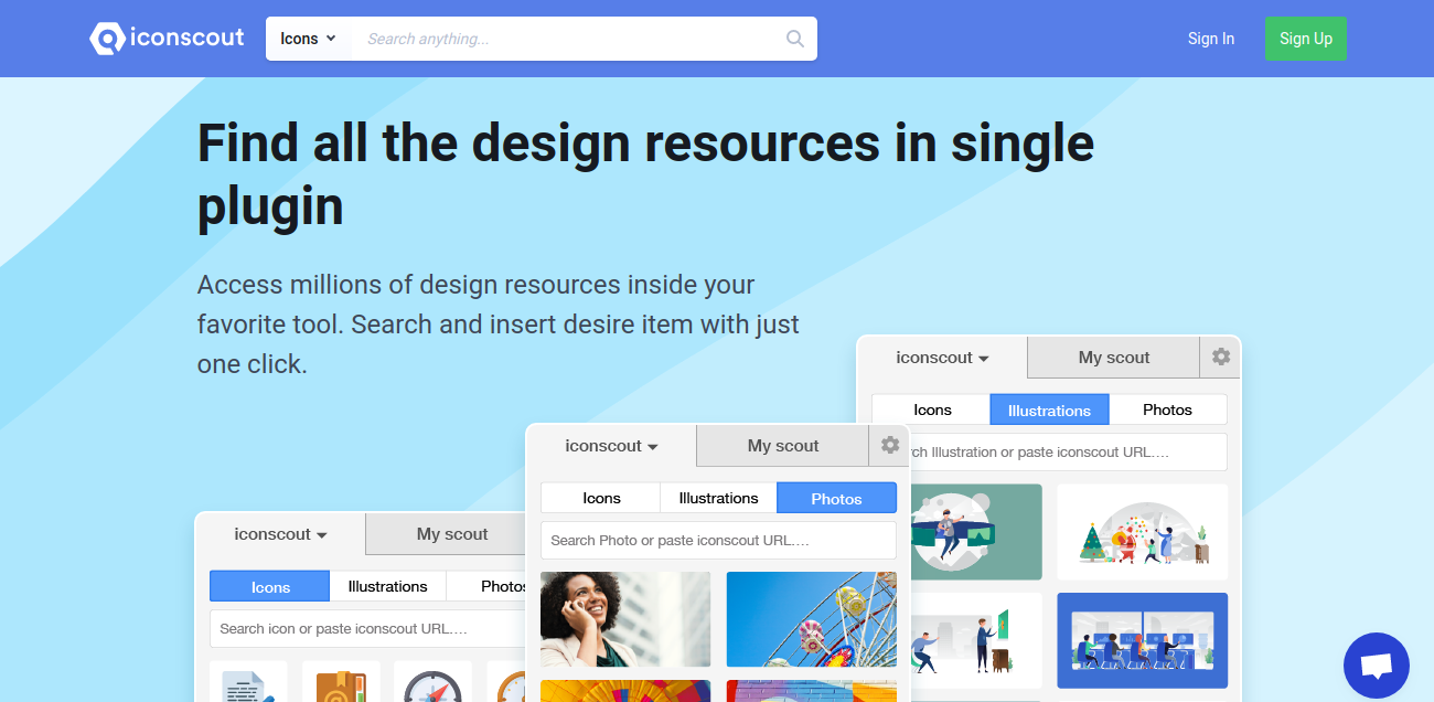 Find all the design resources in single plugin Access millions of design resources inside your favorite tool. Search and insert desire item with just one click. Pick your favorite designers or photographers Choose your favorite designer and photographer and quickly access their design. Choose plugin mode as per your wish Like working with dark theme? Choose different plugin mode Light or Dark as per your wish. Quick Prototype, best for wireframes Insert random icons, illustrations and photos in your design with just one click and create beautiful wireframes. Get inbuilt MyScout Easily share brand assets with your team and access them from tools they are using.