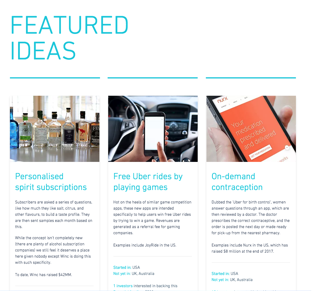 Idea Crunch is a platform that lists successful business ideas not yet launched in your country. Entrepreneurs can run with the ideas for free, or apply to pitch a group of interested investors, convincing them why they are the best person to start the concept locally.