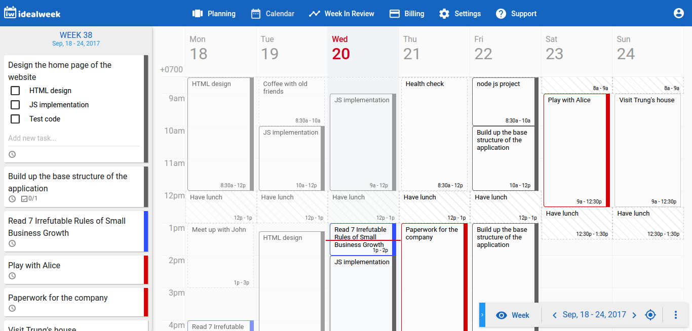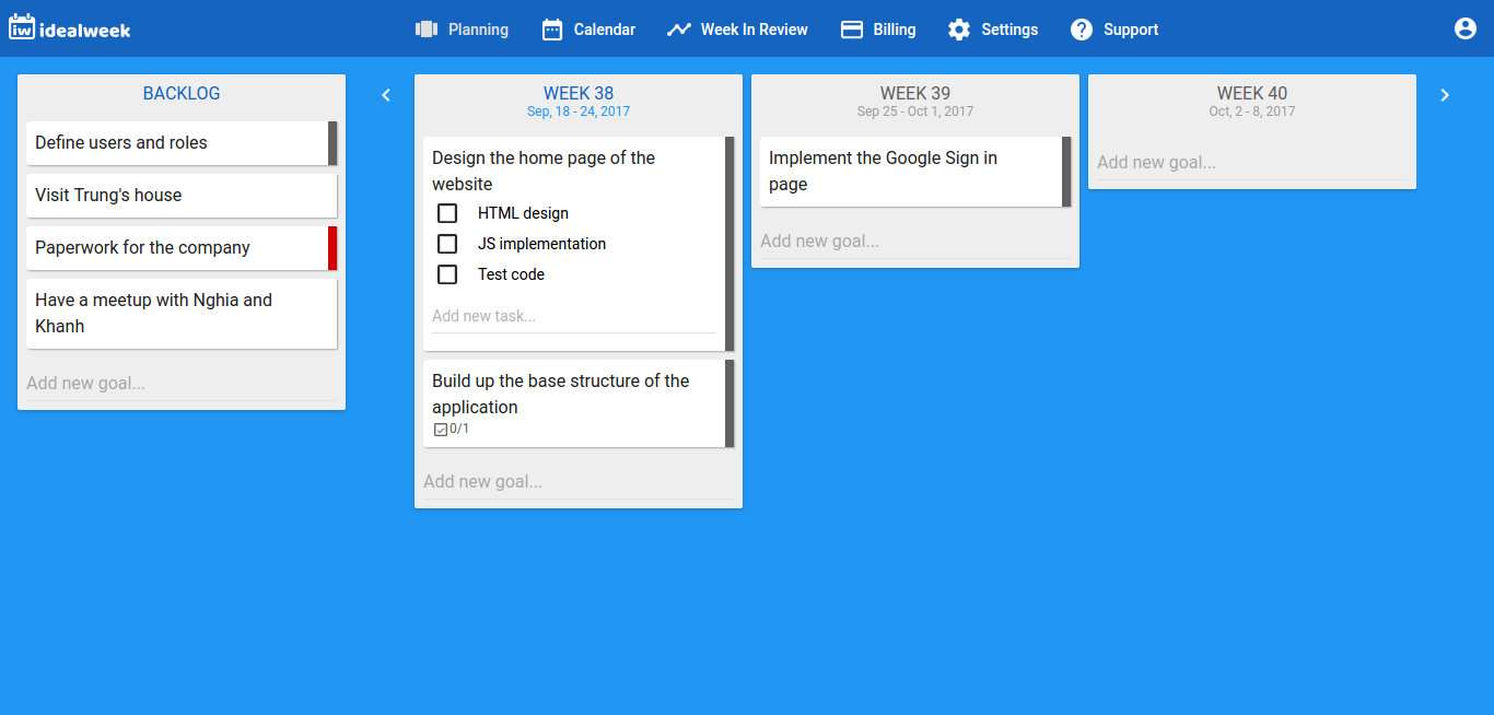 The ultimate tool for time management and week planning. - Organize your goals efficiently with backlog and week goals. - Plan your time easily with drag and drop and intuitive design. - Get notified on your devices and track your time spent. - Review your week and improve on the next ideal week.