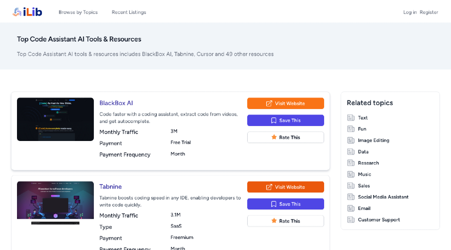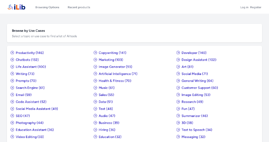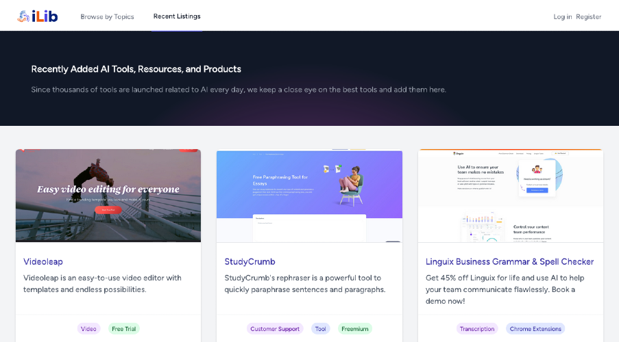 Explore AI tools by searching a keyword or by pre-defined topics. With more than 100 topics, you can browse tools sorted by highest popularity (website traffic)