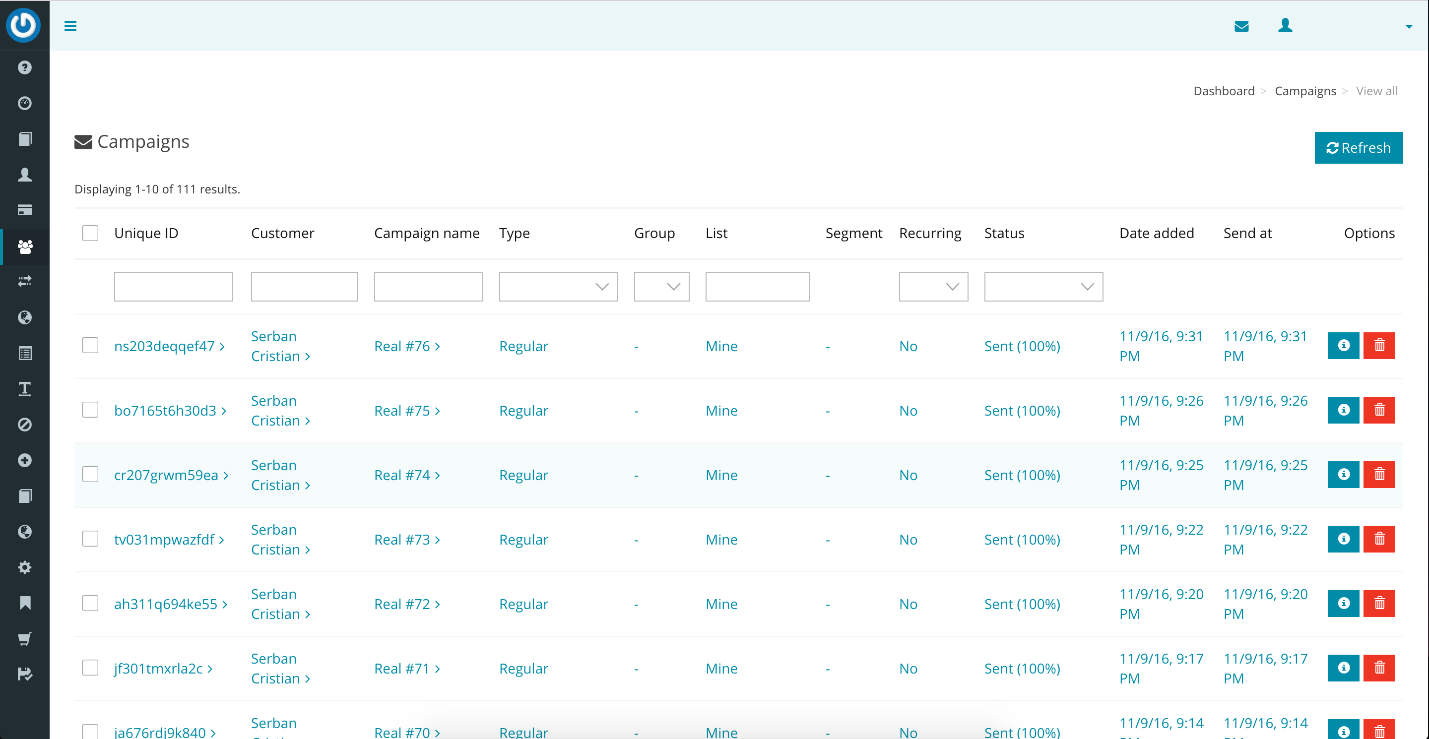 iMailing is a simple to use, efficient and full-featured email marketing application with an impressive features set. With iMailing, user will be able to properly handle email marketing for their own purposes. User can create custom fields for their lists (text/textarea/dropdown/multi dropdown/etc) which they can later use to segment their lists. User can create smart autoresponders to follow-up with their prospects. User can use ANY smtp server to send their newsletters, or php’s mail, or sendmail, or directory pickup, or can even use a service like Mandrill, SendGrid, Amazon SES, SparkPost, MailGun, DynEmail, LeaderSend to do so.