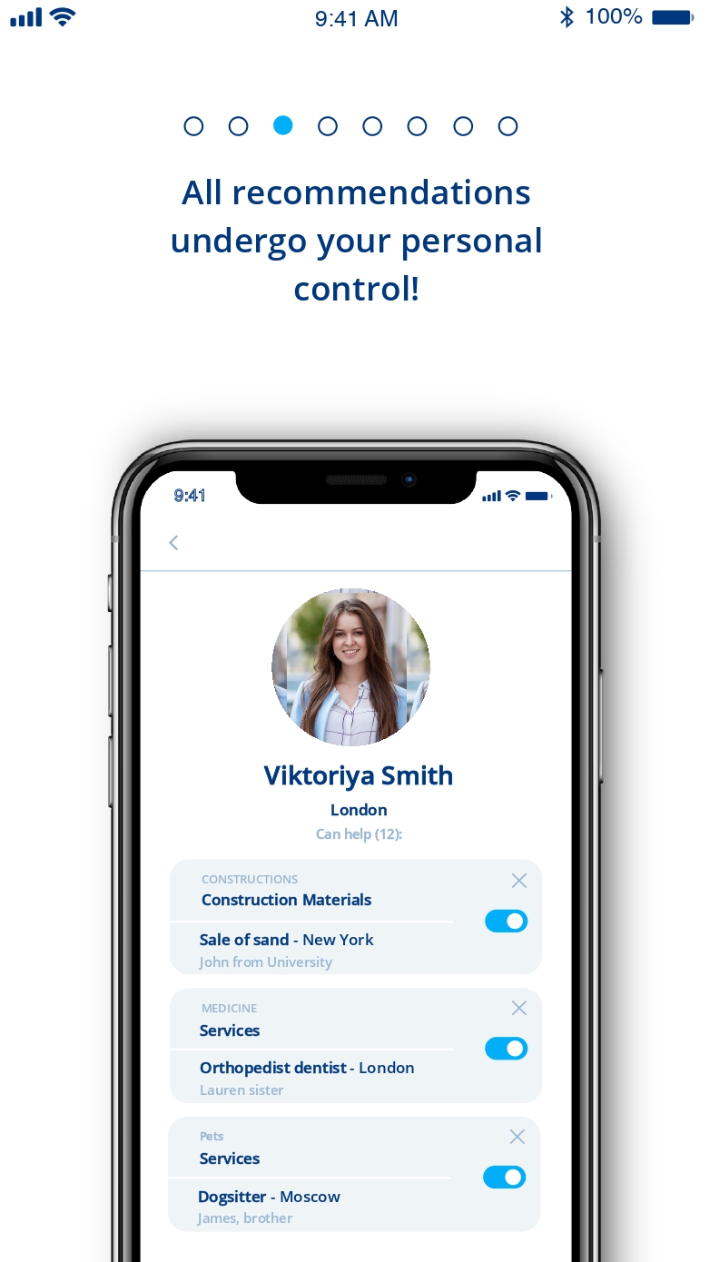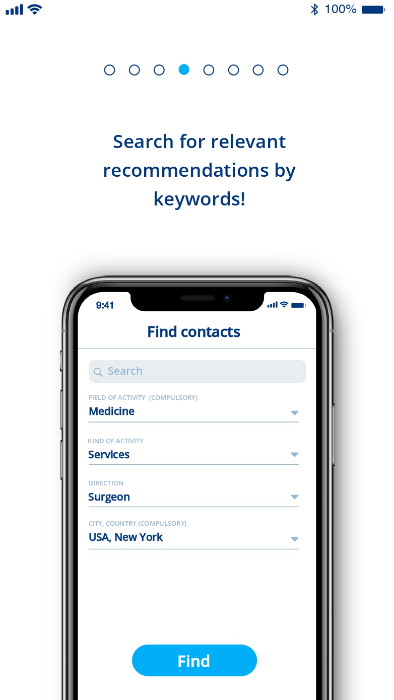 The main capital of any person is communication! When we are looking for specialists, we most often trust the recommendations of our friends. It’s calmer for us to choose a repair team or a pediatrician, not by an ad on a post or on the Internet, but by those we have already dealt with one of those we know. It’s more reliable to hire the person about whom not his template resume will tell, but a “live” recommender. But we often do not understand the full value of our friendly and business ties. For example, a neighbor, Uncle Vitya, with whom you walk dogs in the mornings, may turn out to be the same dentist who will save your friend’s tooth. A former classmate of a colleague will quickly and professionally provide you with audit services. But we do not sell friends, we help make life easier and more useful. Our application was created just to shorten the chain of six handshakes to one click. We went the farthest in networking: our application will be revolutionary for the business sector. It will help in finding the right partners at various events. Usually we spend a lot of time and energy in order to find the right people among visitors, going out with a stack of business cards, which for the most part then fly to the trash. Or we spend an infinite number of hours in idle talk in search of a coincidence of interests. In InConnections, you can immediately see the right person. Now you do not need to ring up friends, pay smm workers to advertise yourself in thematic groups with an unknown result. Or do posts on social networks that the right people may not see. Simple registration and tag search will reduce the search time and will definitely help you find the right person. Our network operates worldwide. When using the application, you understand who you are communicating with (the person’s profile is open), you see who recommends the contact and bring benefits yourself, advising specialists. Our program is built so that you can earn a high rating if your recommendations are successfully used. This means that more good specialists will be available to you. And you will not be bothered by people in those areas in which you are not competent. That is, if you sell sand, then the person who needs the services of a dog sitter will not write to you. Say goodbye to business cards forever! Find the right person not in six handshakes, but in one click!