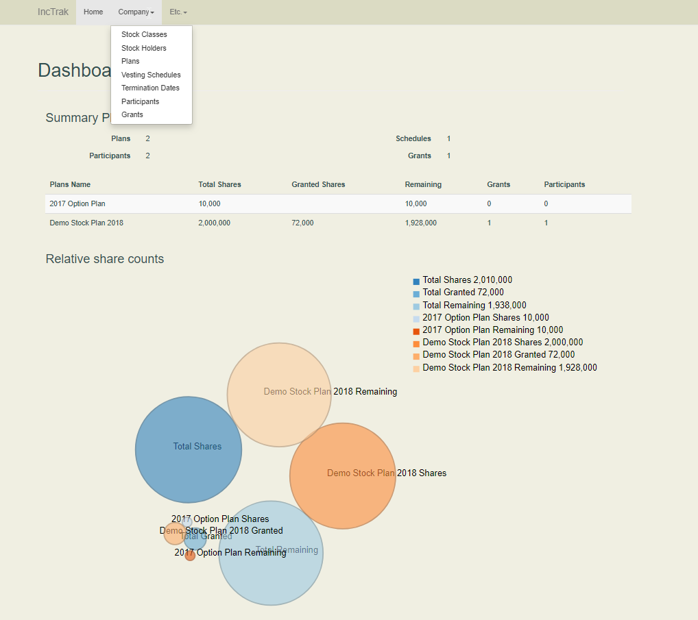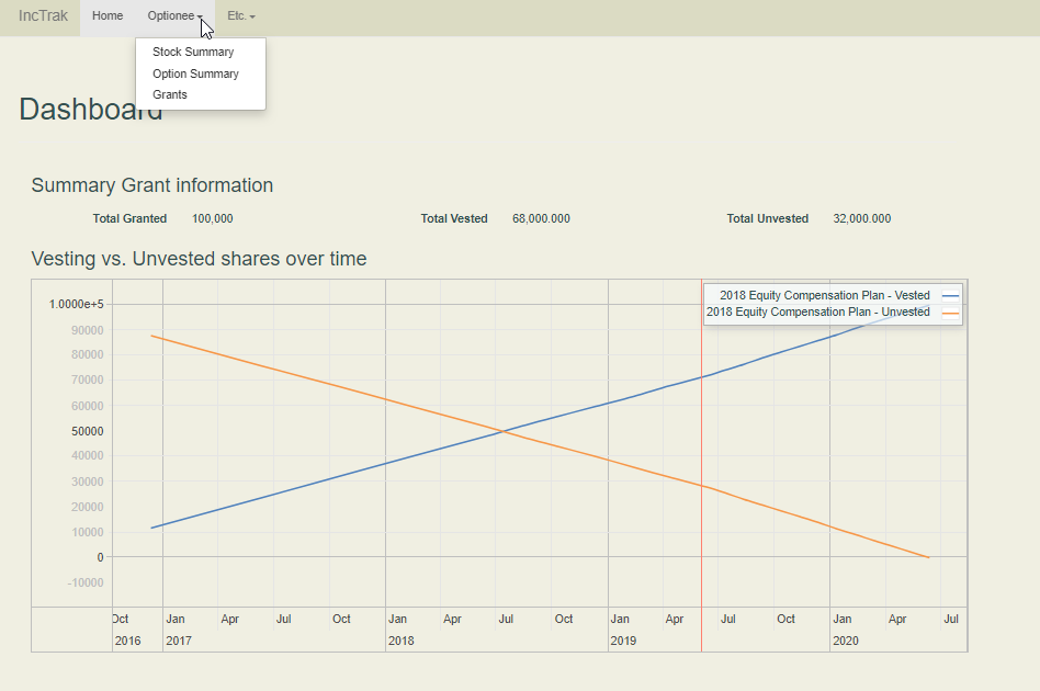 Manage startup company stock and company stock options, using stock classes, ISO, vesting schedules, grants, participants, termination schedules. No more spreadsheets or other limited formats. Easy reporting for both management and optionees. For administrator of plans and participants.