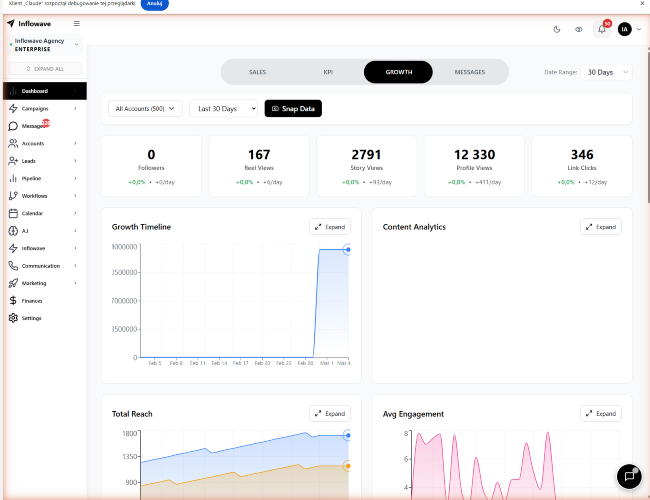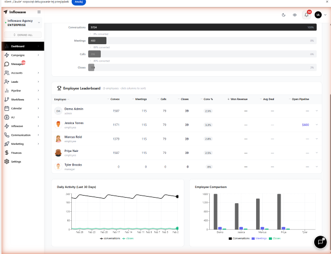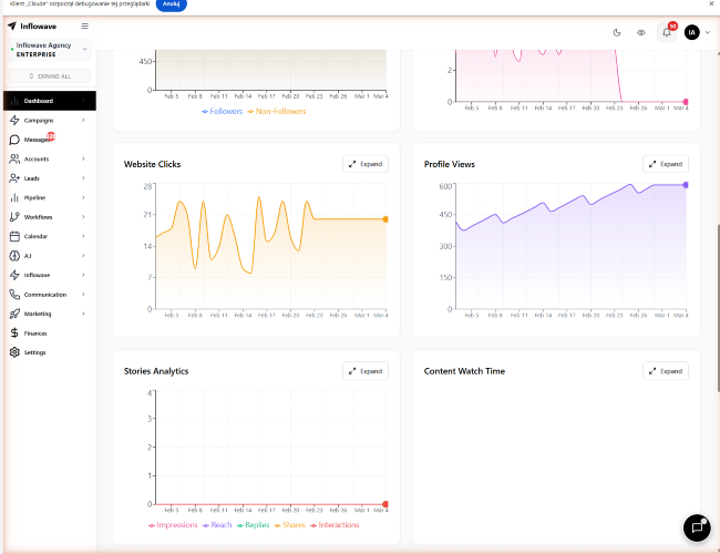 Here is your text **with special characters removed** punctuation symbols like , . — / + etc removed while keeping letters numbers and spacing --- Inflowave Complete Product Overview What is Inflowave Inflowave is an AI powered Instagram CRM and full business operating system built for coaches agencies and brands who manage multiple Instagram accounts at scale It replaces 6 8 separate tools with one unified platform covering CRM automation communication marketing finances and AI Platform Sections Full App Navigation 1 Dashboard 4 tabs Sales Revenue tracking deal metrics follower to customer conversion account performance breakdowns KPI Key performance indicators employee performance engagement benchmarks Growth Follower growth trends audience demographics activity heatmaps Messages Message volume metrics response times conversation analytics All tabs support date range filtering 30 60 90 days custom employee filters industry filters and per account breakdowns 3 Messages Unified Inbox Single inbox for ALL DMs across unlimited Instagram accounts Real time chat with Pusher live updates Contact info panel with lead details Conversation sorting filtering and search Mobile optimized responsive views Unread count tracking per conversation 7 Workflows Automation Engine Visual node based workflow builder Drag and drop trigger action chains 34 trigger types new follower DM keyword comment story mention etc 50 action types send DM tag lead assign to team send email webhook etc Conditional routing and branching logic AB Variation testing Compare workflow versions side by side Template library and community marketplace AI assisted workflow creation Execution history and performance tracking Workflow cloning duplication Real time collaborative editing Yjs sync 9 AI Suite 5 modules Setter AI powered DM auto responder trained on your conversation history agent configuration training data management Engine AI video composer with prep wizard template library composition history target URL management InfloAI SOP Standard Operating Procedure generator with detail pages AI training center rules engine simulator for testing upload training data management suggestion panels Assistant AI message classification model training interface for categorizing conversations Websites AI website builder with Landing page generation via chat Website analytics dashboard Heatmap viewer for click tracking Session replay player Rage click detection alerts AI insights on visitor behavior AB testing panels Additional AI features Agent Stats page Performance metrics per AI agent Voice Cloning Create voice clones for automated voice responses Cupid AI configuration Advanced agent setup
