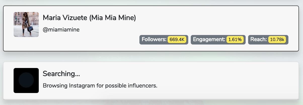 Influencer Lookup is tool that will allow Instagram marketers to research a potential influencer's statistics to determine whether or not they are a fit for an advertising campaign. One of the best ways that someone can market their product or service is through Instagram shoutouts. However, finding the right user to broadcast that message can be a tedious undertaking. Many marketers rely on spreadsheets and hours of searching to generate a list of potential influencers that would give them the best results. The goal with Influencer Lookup is to help those marketers perform their research faster.
