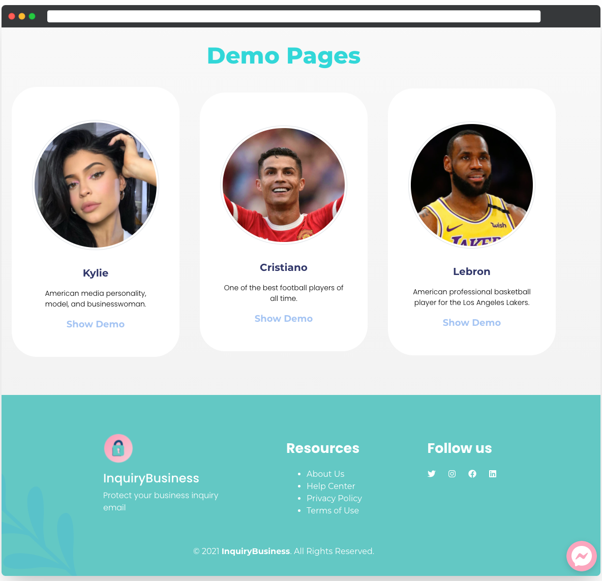 We built inquiry.business to help influencers to protect their business contact information from unwanted and spammy emails. Moreover, you can add all of your social links to it so your followers can reach you on other platforms.