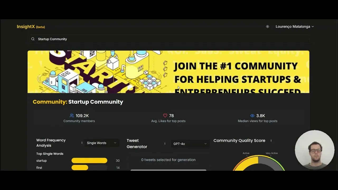 InsightX is a platform that provides analytics for communities on X (former twitter). Understand what content resonates and accelerate your growth on X. The platform provides all the tools and insights you need to understand X community dynamics and identify content that attracts growth. Get deep insights from X Communities to know what content truly connects with your audience. Monitor which posts succeed and why, allowing you to adapt strategies on the fly. Our Ranking System helps you recognize and celebrate top contributors so that you can learn from their content. Understand interaction patterns to create more engaging and targeted content. Automatic AI tweet generator based on analytics and content that works.