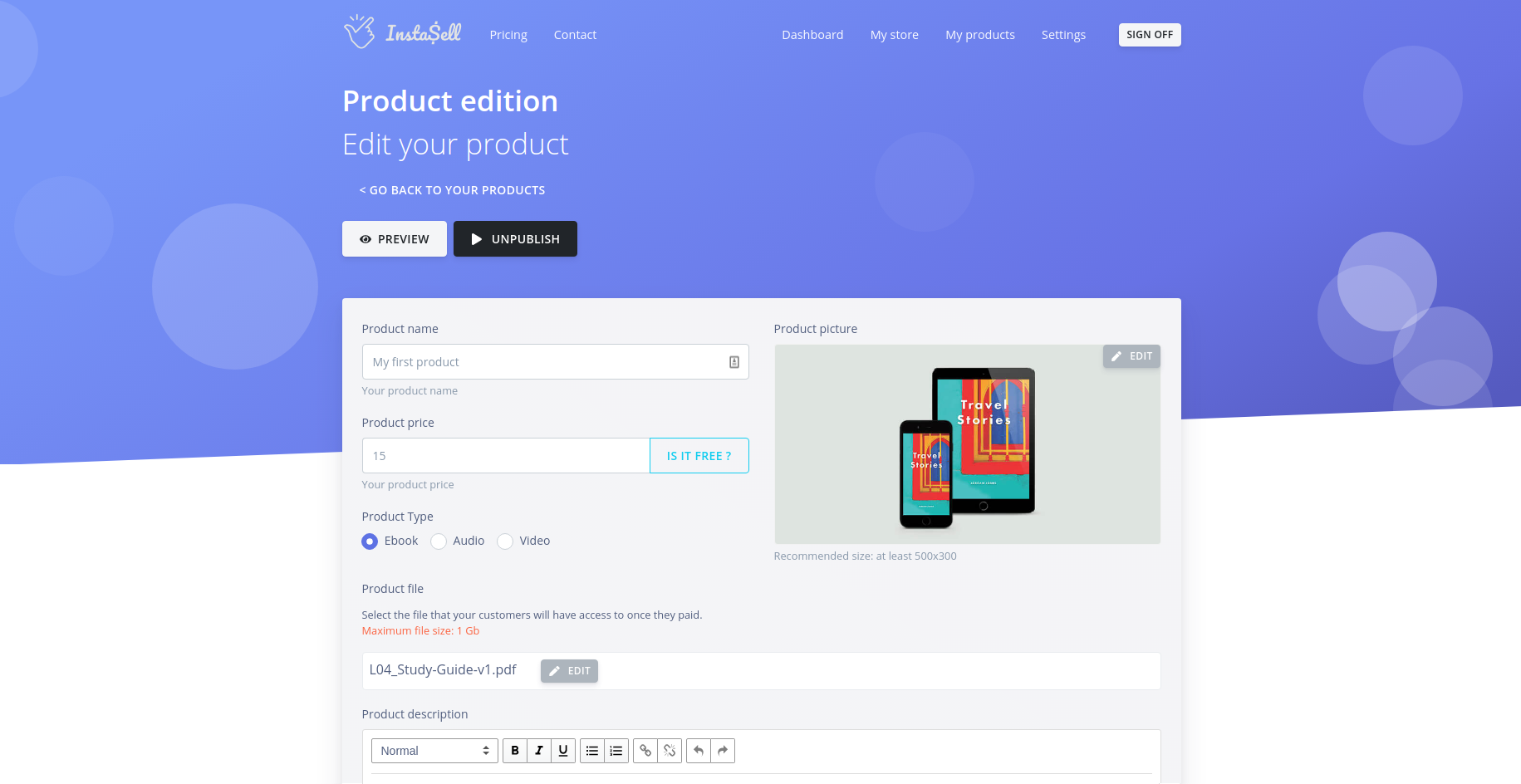 Publish and sell your digital assets in 5 minutes with InstaSell. Connect your Stripe account, customize your store and create your products without any coding required. Then share your online store and product checkout page with your social media and start making revenue. Use InstaSell native Mailchimp integration to synchronize your customers with your Mailchimp audiences. Use InstaSell Zapier integration to further customize your order marketing flow.
