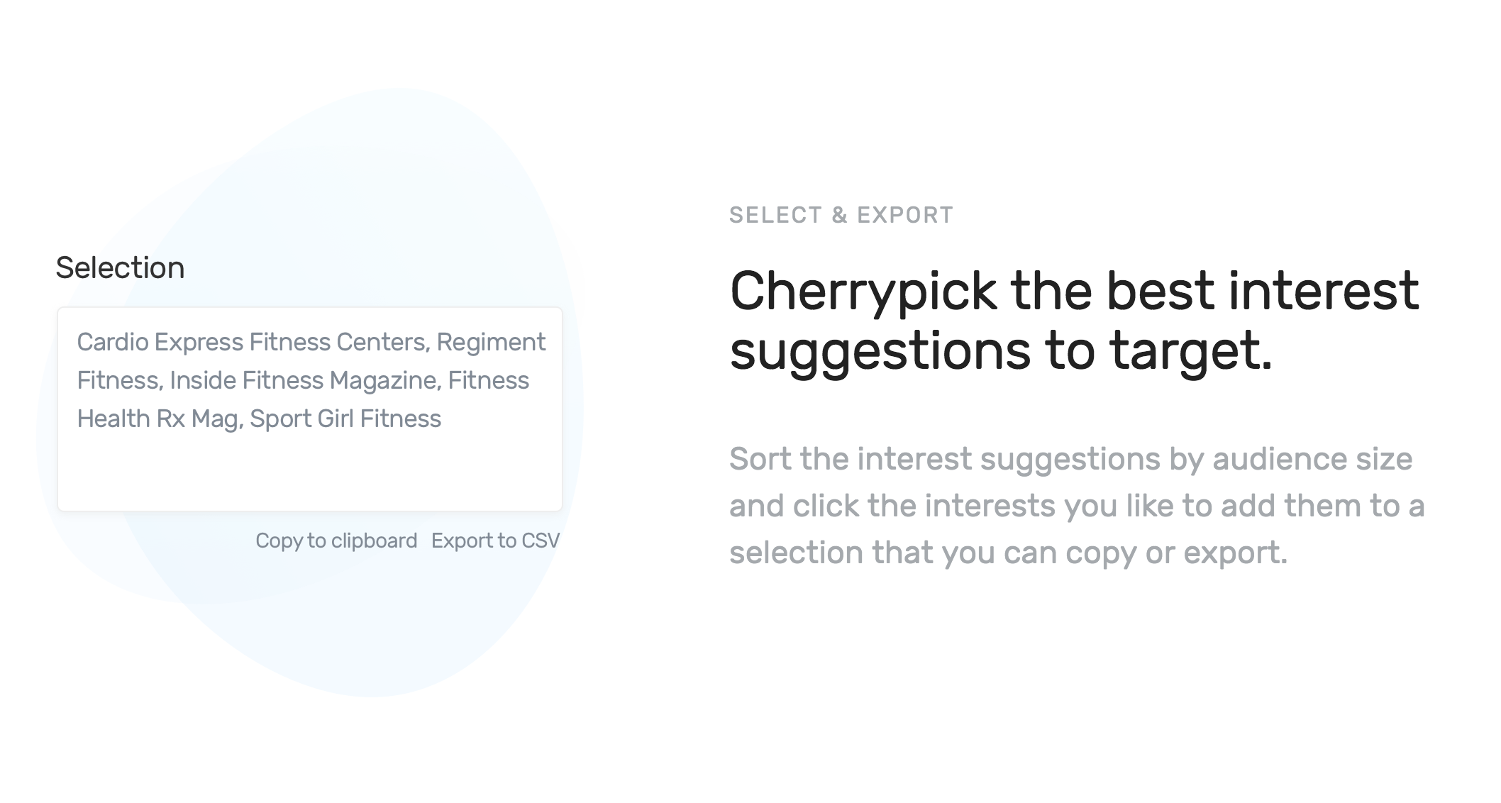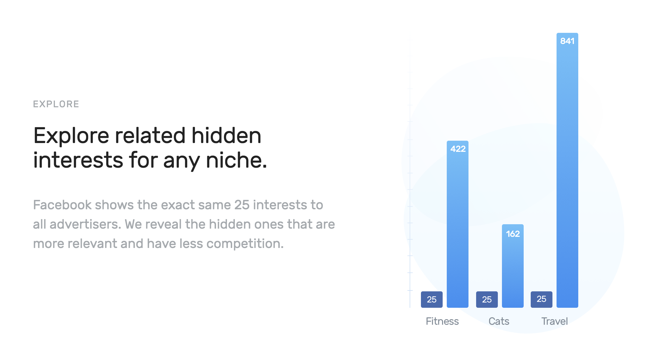 InterestExplorer is an app that uses the Facebook Marketing API to get 1000's of interest suggestions, that are hidden from the Facebook Ads Manager interface (which only shows 25 interest suggestions). Features: - You can enter a keyword to explore the underlying related interests. - The app shows the (worldwide) audience size per interest. - You can click the FB or Google button to open a search for the keyword on these platforms. - You can easily select interests you like and copy or export them for use in your FB campaigns.