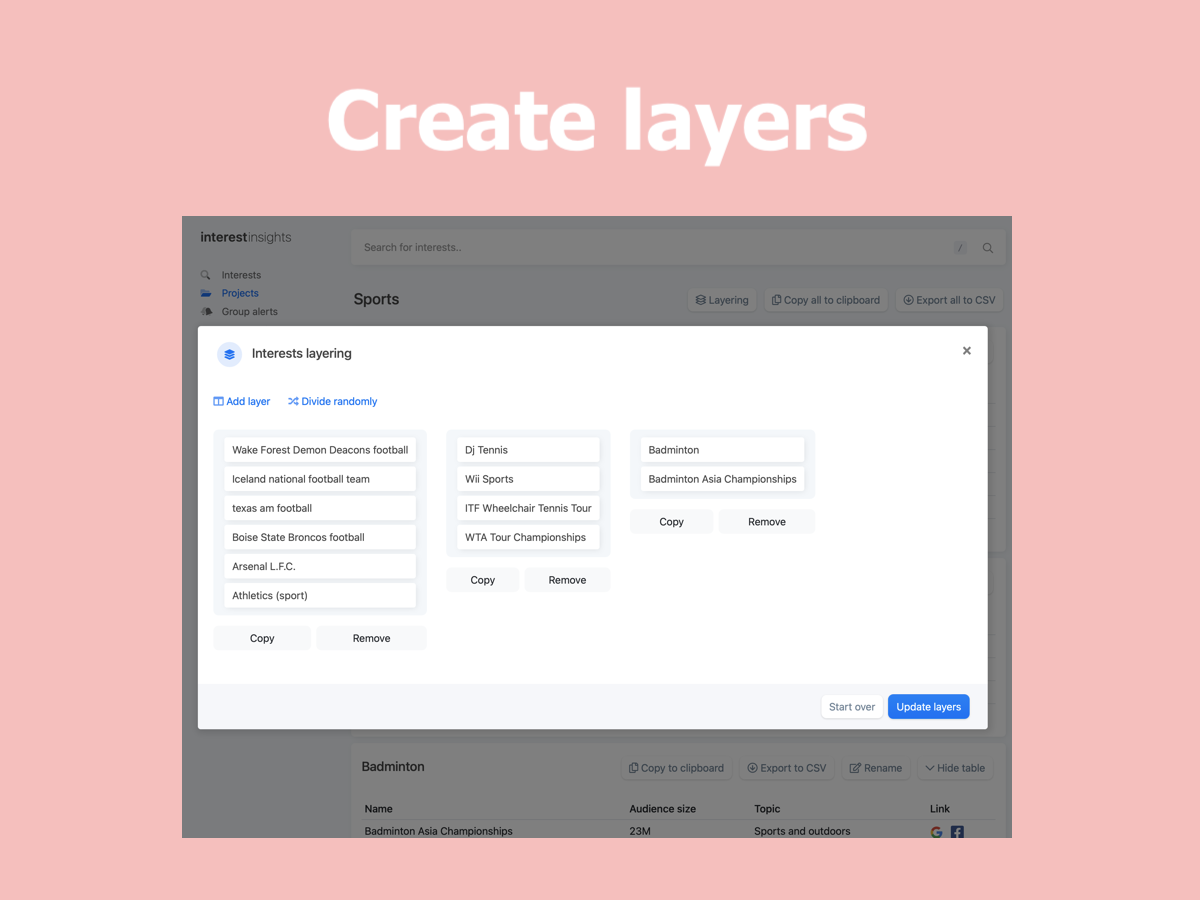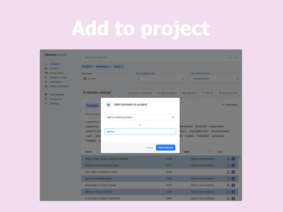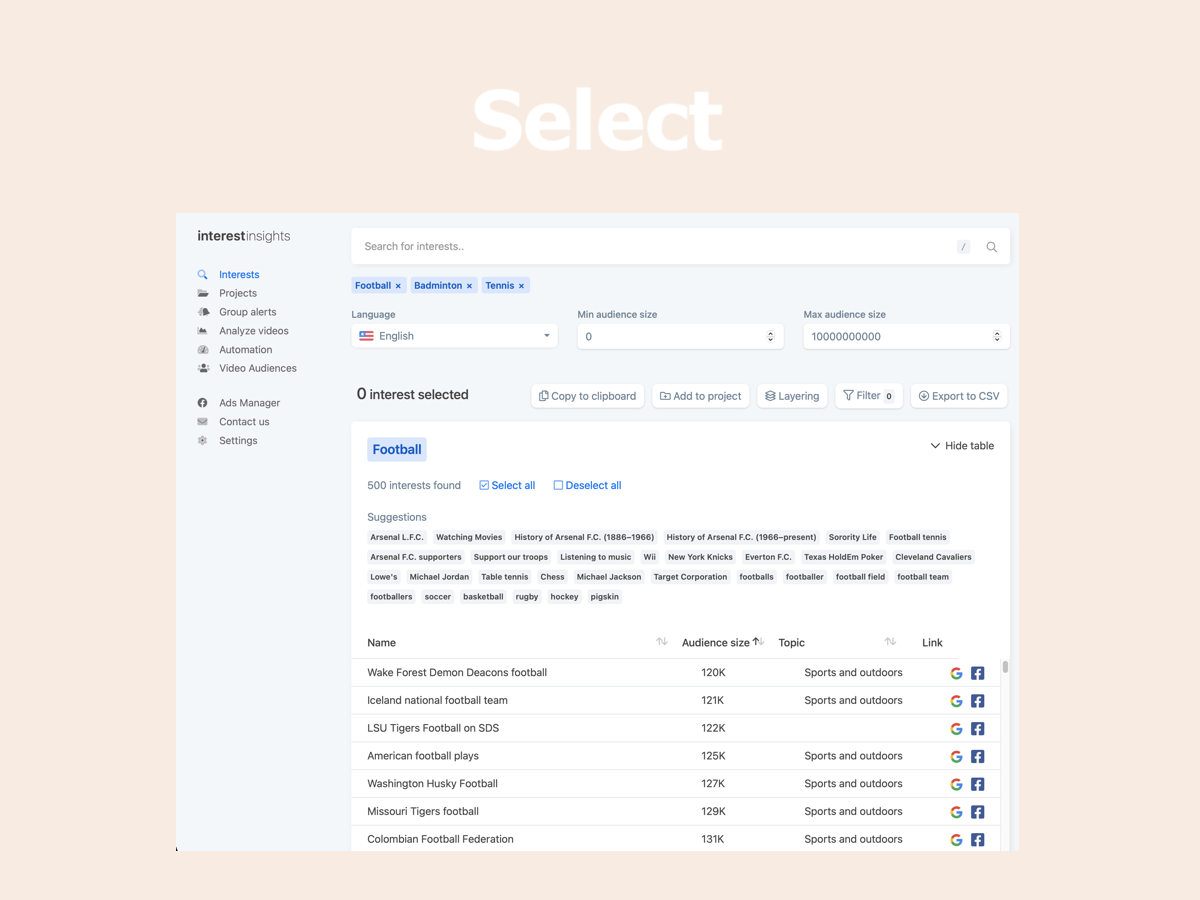 With the help from +10K beta users and their feedback, we are launching interestinsights v2 ? A new user friendly design and new features like: - Search for multiple keywords - Add suggestions for searches as keywords - Create layers for saved projects - Copy and export individual layers Since the initial launch of interestinsights, have received a lot of feedback, resulting in this new design, to optimize the workflow for Facebook advertisers, save time in the advertisers daily tasks. We launched almost 2 years ago, in a period where we have had the pleasure of introducing our platform to more than 10.000 individuals, a tremendous ride with more than 145.000 searches, 17.900.000 hidden interests found and analyzed more than 60.000 videos. If you are unfamiliar with interestinsights, it gives every Facebook™ advertisers access to all the great Facebook™ interests that can be difficult to find. Facebook shows the same 25 interests on the same search every time, so as an advertiser, you are shown the same interests as your competitors. Without hours of research, most of the good interests seems hidden, but with interestinsights, all the interests will be shown at once, and faster. Additionally do we have videos insights, that analyzes and compare your Facebook videos across multiple pages so you can make better videos for your audience and improve your audience retention. Furthermore do we have Group alerts for you to track keywords in Facebook groups and notify you when your keywords are mentioned, so you can turn group members into customers. All this for free during our beta phase ? Beta users who sign up now, will get 3 months for free when the beta ends by the end of this fall ?
