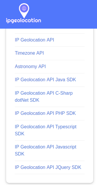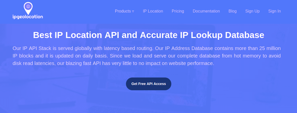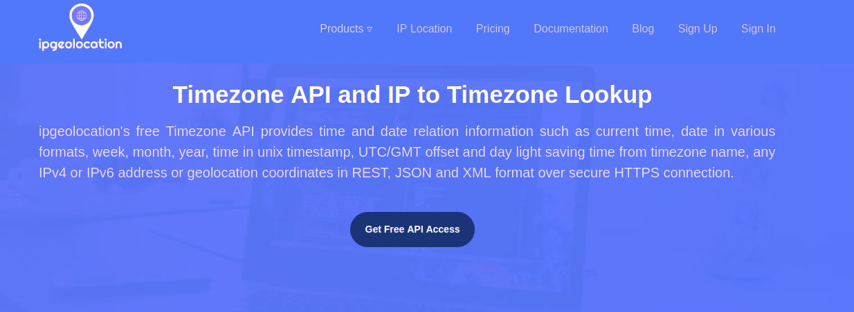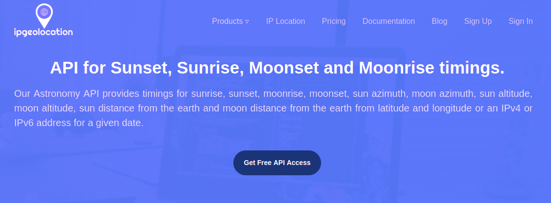 Our accurate IP API Stack provides country, city, state, province, local currency, latitude and longitude, company detail, ISP lookup, language, zip code, country calling code, timezone, current time, sunset and sunrise time, moonset and moonrise time from any IPv4 and IPv6 address in REST, JSON and XML format over HTTPS.