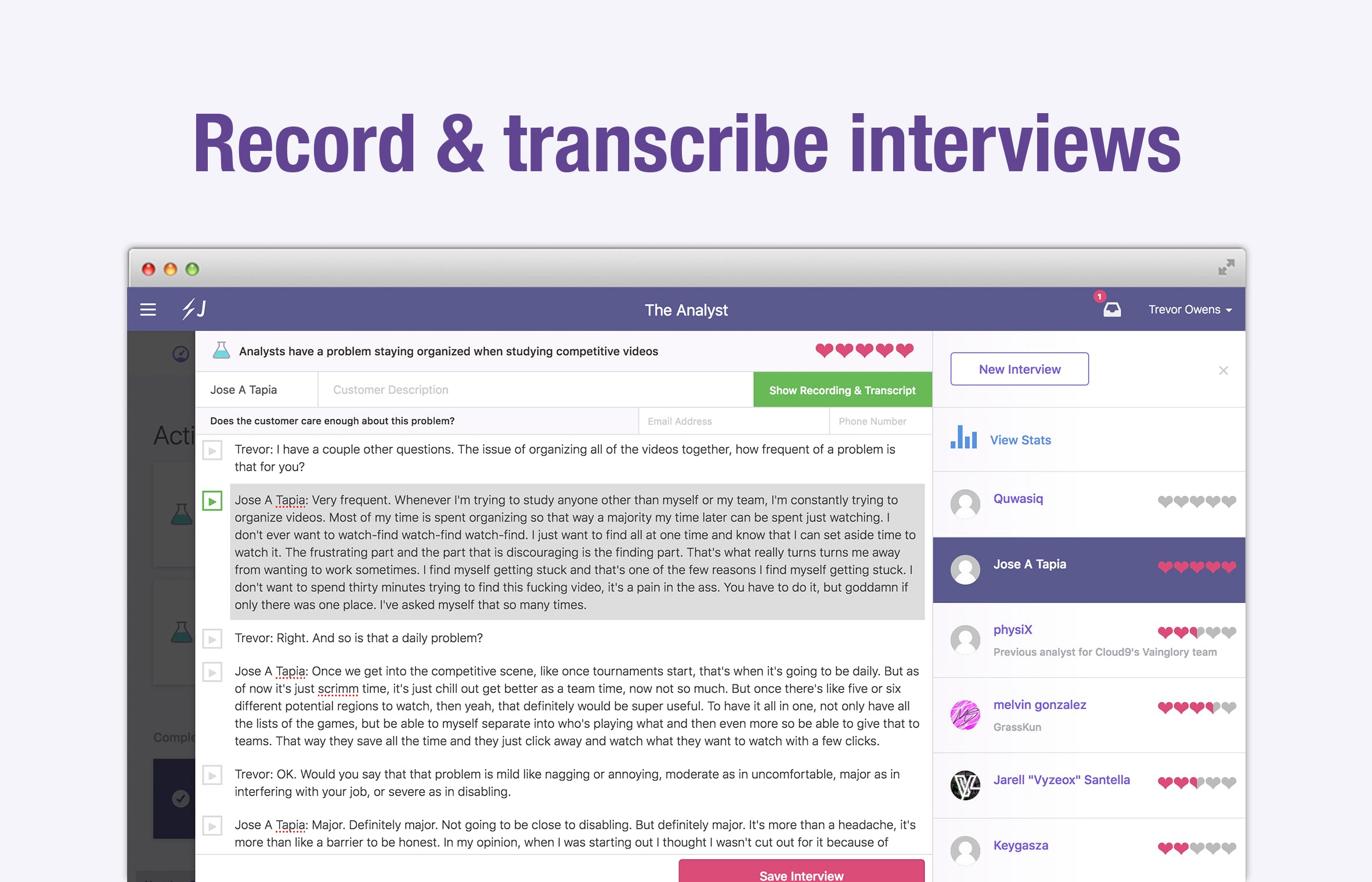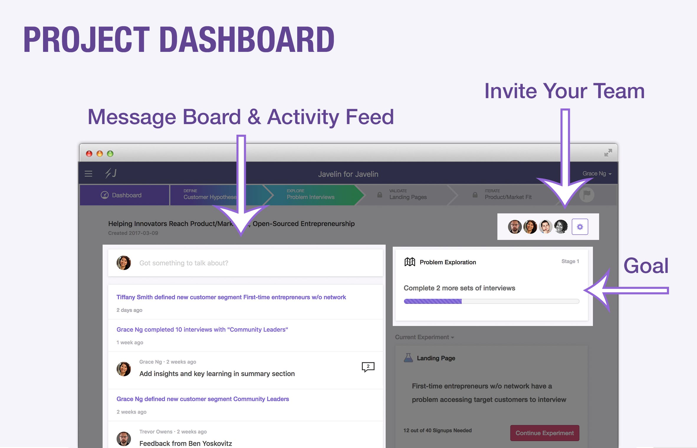 Idea to Successful Product - All-in-one Lean Startup and Customer Development software. Javelin helps you test startup ideas with potential customers and gives you data to guide your decisions. Record and transcribe customer interviews, test landing pages, and use pre-designed surveys to analyze the most important feedback.