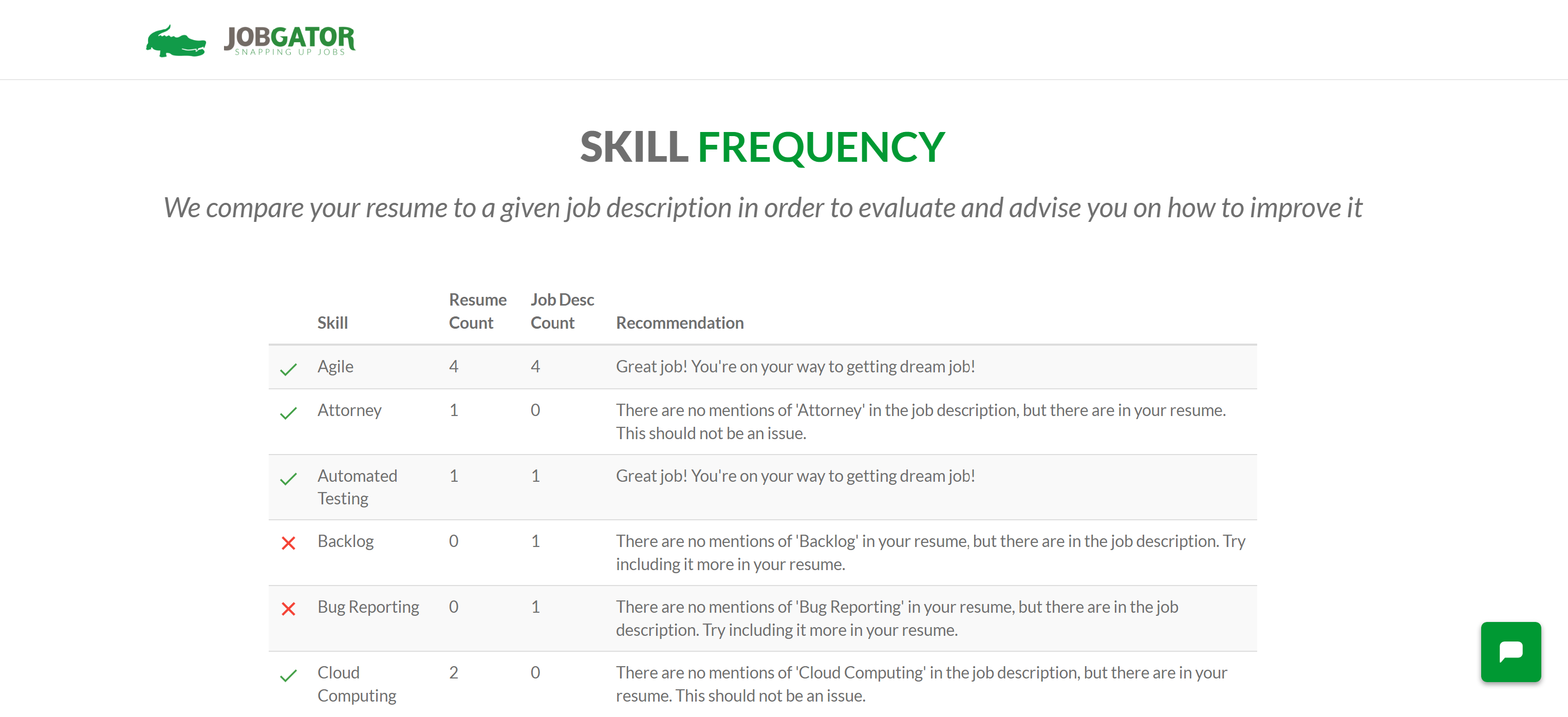 In Order to Complete the Beta testing: 1. Navigate to https://www.jobgator.us 2. Create an account and fill out a profile 3. Test resume improvement and job search functionality 4. Test overall usability Note: Feel free to use our easy to follow tutorial to familiarize yourself with our tools: http://ior.ad/hkr Upon Completing the Beta, please: 1. Follow the following link and complete our feedback survey: https://goo.gl/forms/0WVZzMdXUbAW31oJ2 2. Please feel free to give any other feedback you might have at [email protected] Please note that by taking the beta, you agree to the terms and conditions set forth in the following document: https://docs.google.com/document/d/1kykULtW3FkAnTUz1qriwyS7voKVWkC21TmSAXjXv89Q/edit?usp=sharing