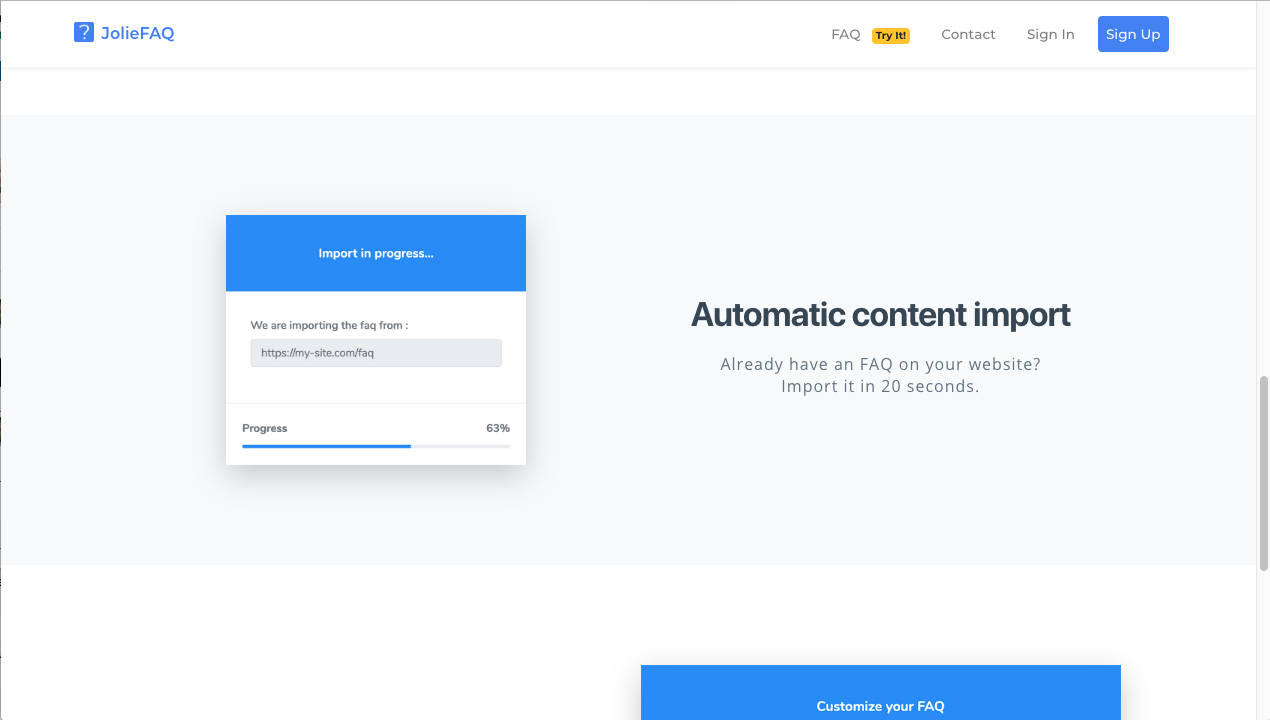Get a clean, pixel perfect FAQ in seconds for you app or website. Some nice features : - Super simple easy content creation - Automatic content import - Tailor made FAQ - Easy to embed in your website/app