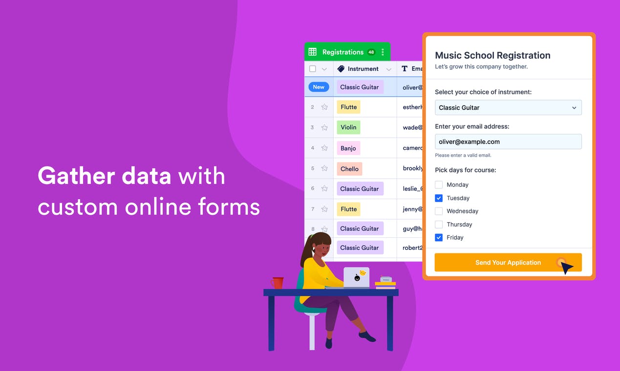 When it comes to organizing your data, sometimes a spreadsheet just isn’t enough. That’s why we’re excited to announce the release of JotForm Tables, a product over three years in the making and proudly led by JotForm’s innovating women leaders. JotForm Tables is more than a spreadsheet, and more than a database — it’s a complete online workspace designed to boost your team’s productivity. You can collect data directly through JotForm’s online forms or import it from another source — then view and manage your data in shareable spreadsheets, calendars, reports, and easy-to-read cards.