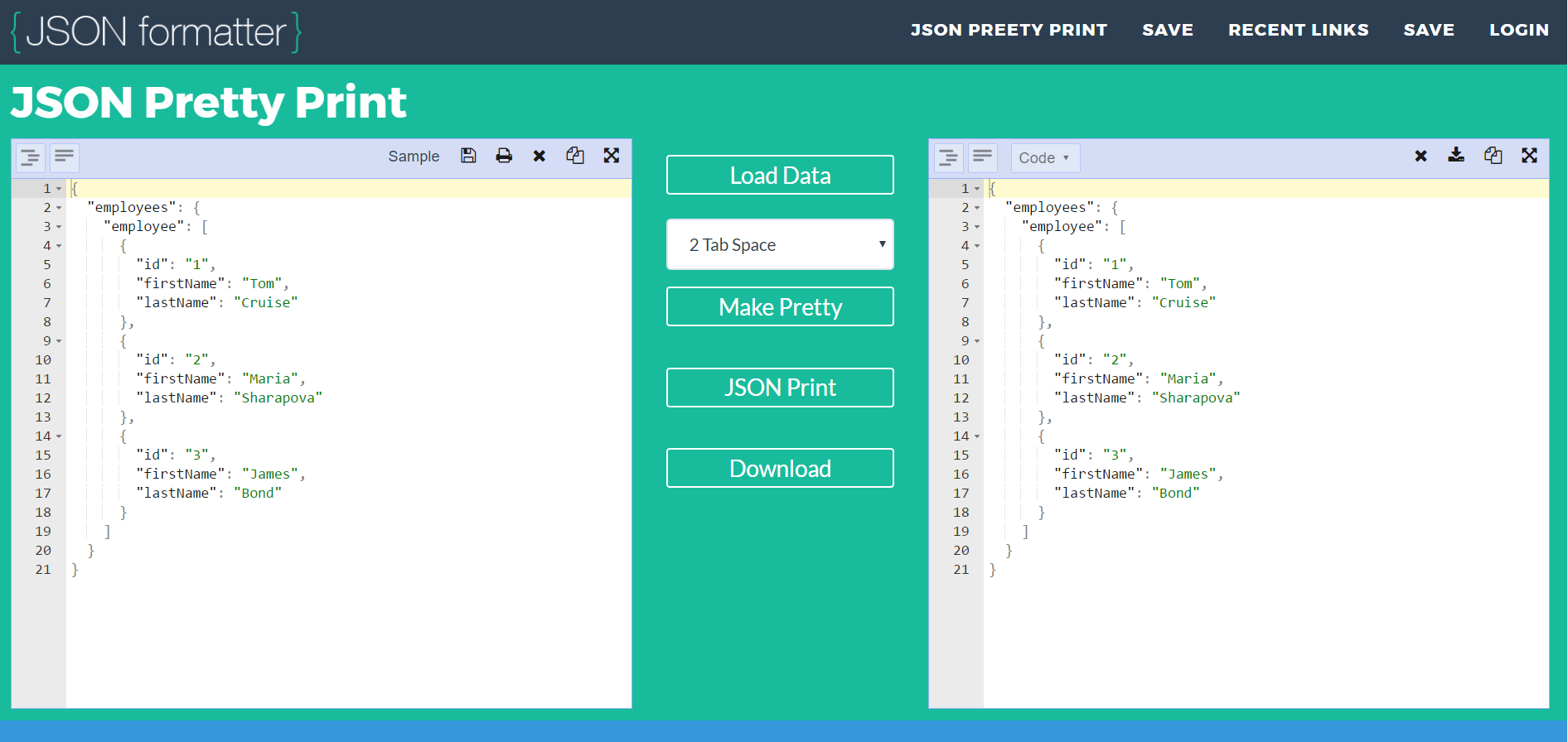 JSON Pretty Print helps Pretty JSON data and Print JSON data. It's very simple and easy way to pretty JSON and pretty print JSON