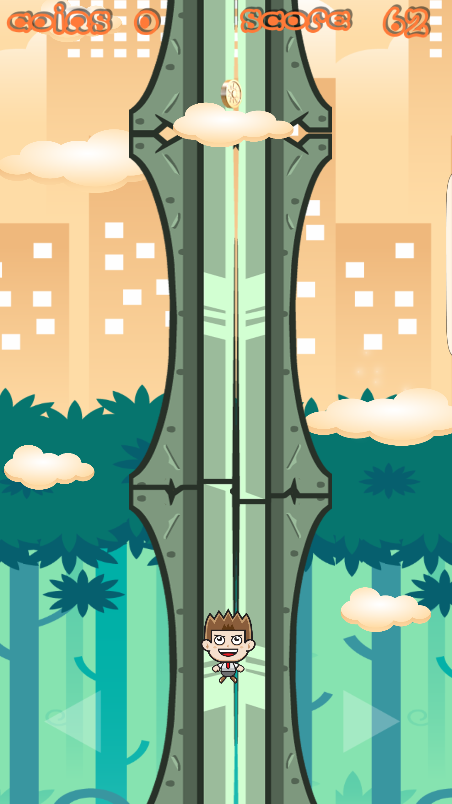 jump up and away by bouncing from one cloud to another , and go to the top Beyond the towers