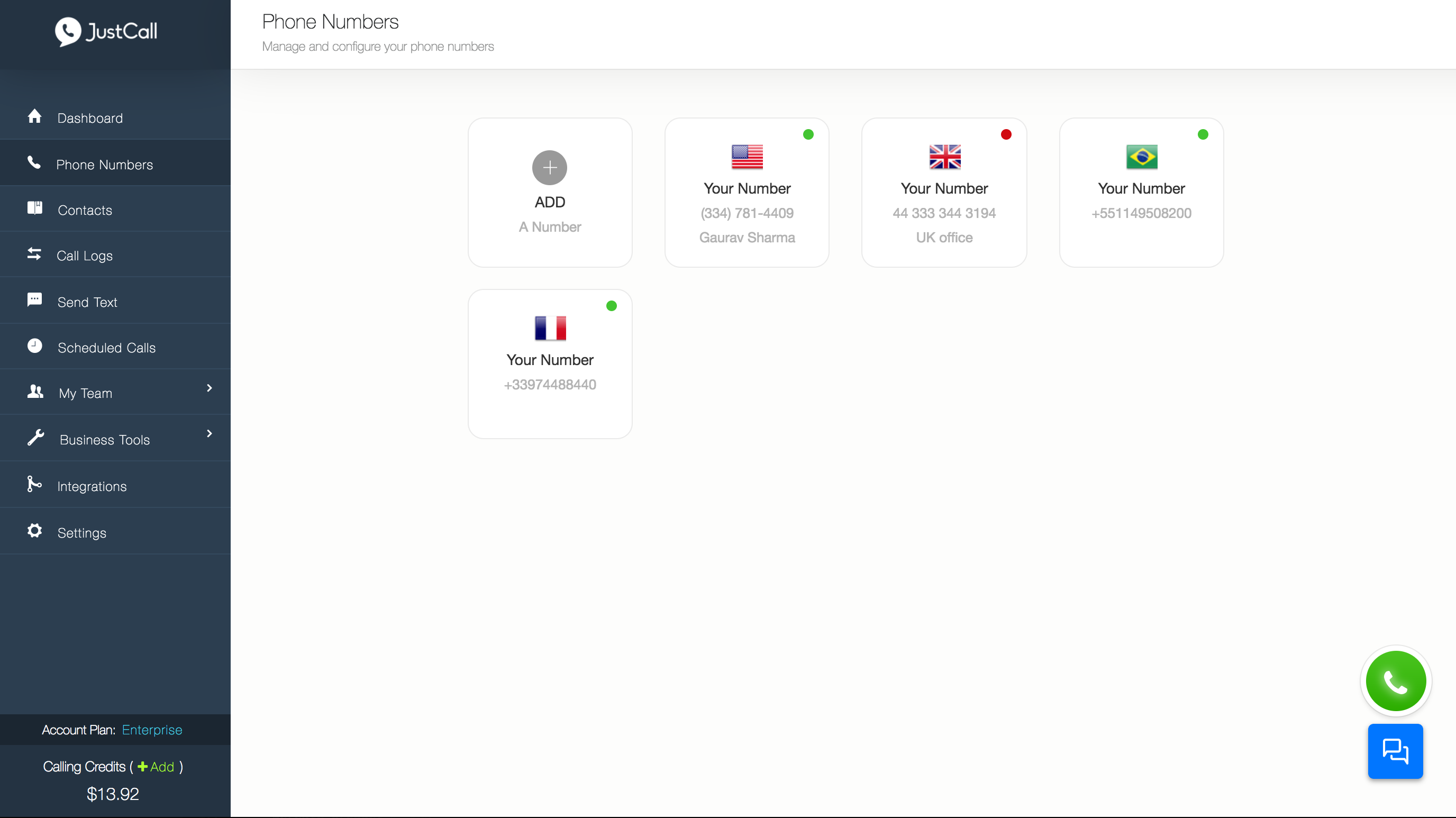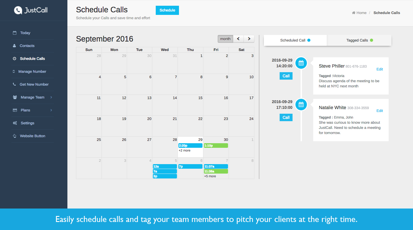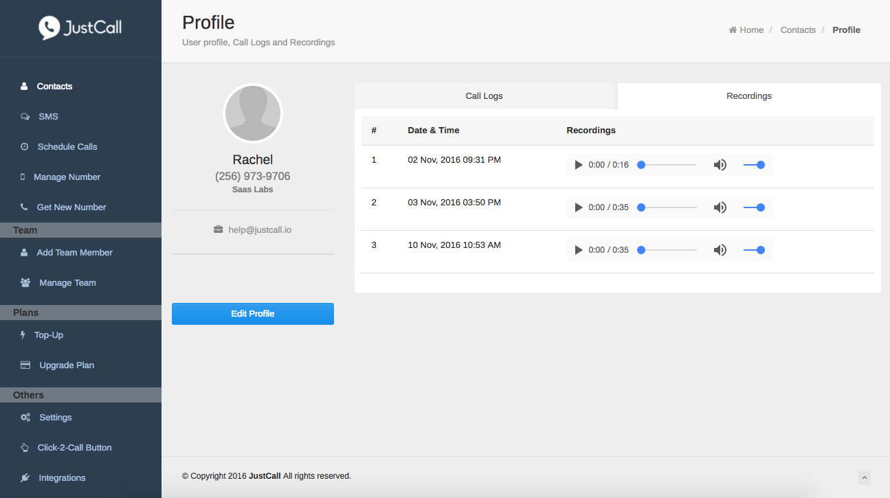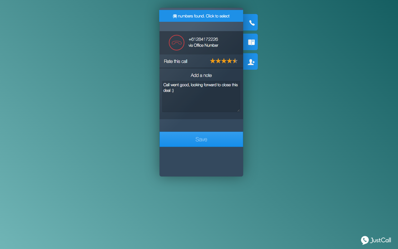 Justcall is a cloud telephony system that helps your sales and customer service teams cater international clients & prospects better. A sales guy can generate phone numbers in any of the 58 countries that we support (incl. US, UK, Japan, Australia, South Africa + European countries) & start making calls to his/her international contacts from a local number. He/she can receive all the calls on his own phone number (without any internet requirement) or on his internet browser. Getting started is super easy : Signup with Justcall, generate a phone number (local or toll-free) and start making/receiving calls and sms. In-built CRM system allows contact management, call recording (for sales managers), call rating and so on. We also provide integrations with Zoho, Freshdesk, Pipedrive, Google contacts, Zendesk (& many more in making). You can set up a small call center of your own wherein if someone dials in a number, 4-5 team members will get a phone call simultaneously and anyone can p