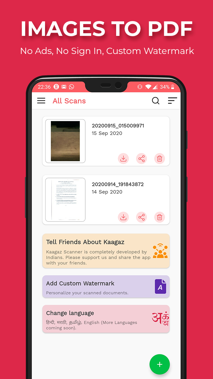 Kaagaz Scanner is an easy to use Document Scanning & PDF Storage App. It requires no sign in, has no ads and is completely free to use. Kaagaz Scanner is available both on Android & iOS. At Kaagaz we are building mobile-first productivity tools for the next billion users, to help them become part of mainstream digital economy. These users can easily use these tools on their smart phones in their own choice of Regional language, to do tasks for which they earlier had to depend on someone who has a Desktop/Laptop. Our first product is a documents super app - Kaagaz Scanner.