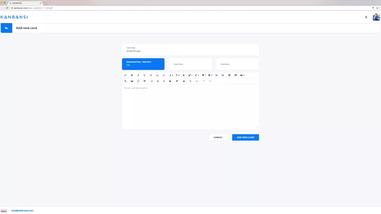 A brief history of KANBANSI The idea for KANBANSI came to us when we needed an online tool for our own software development at BAD SISTEMS. It was imagined to provide project progress overview, divided into features. Although there are already numerous Kanban tools online, we were convinced that we could do something less complicated, clean and easy to use. We give our best that you, our valued customers, have a lot of fun with KANBANSI and ensure it helps you with your daily work. Teams Create your teams based on your specific needs. Invite more users to join your team. Give them a specific role and have a full overview of their actions and progress. Assign on the card Organize and delegate workload, in a form of individual tasks. With a set of defined permissions for each role, you can easily assign the right role to the right team member. Real time updates Let your co-workers see your activities on the board in real time. Every individual action on the board is visible to rest.