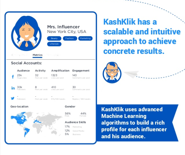 KashKlik is a fully-automated Influencer Marketing Platform. KashKlik connects the community of advertisers and influencers. Advertisers want more ways to promote their products or services. KashKlik provides advertisers quick ways to launch marketing campaigns and pay only per valid click. KashKlik has next generation algorithms for tracking the performance of campaigns with concrete metrics, so that advertisers will only pay for real engagement. Influencers seek new ways to monetize their audience. KashKlik offers influencers quick access to new promotions, to get paid according to their engagement. The bigger the influencer's audience, the higher the engagement, the more the revenue is generated. KashKlik's platform provides a most effective way to tap the potential of Influencer Marketing, with a clear dashboarded measurable ROI. Join us and start enjoying the power of Influencer Marketing!