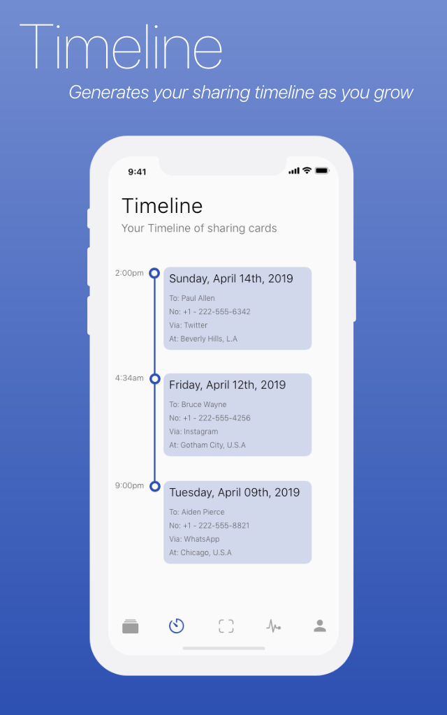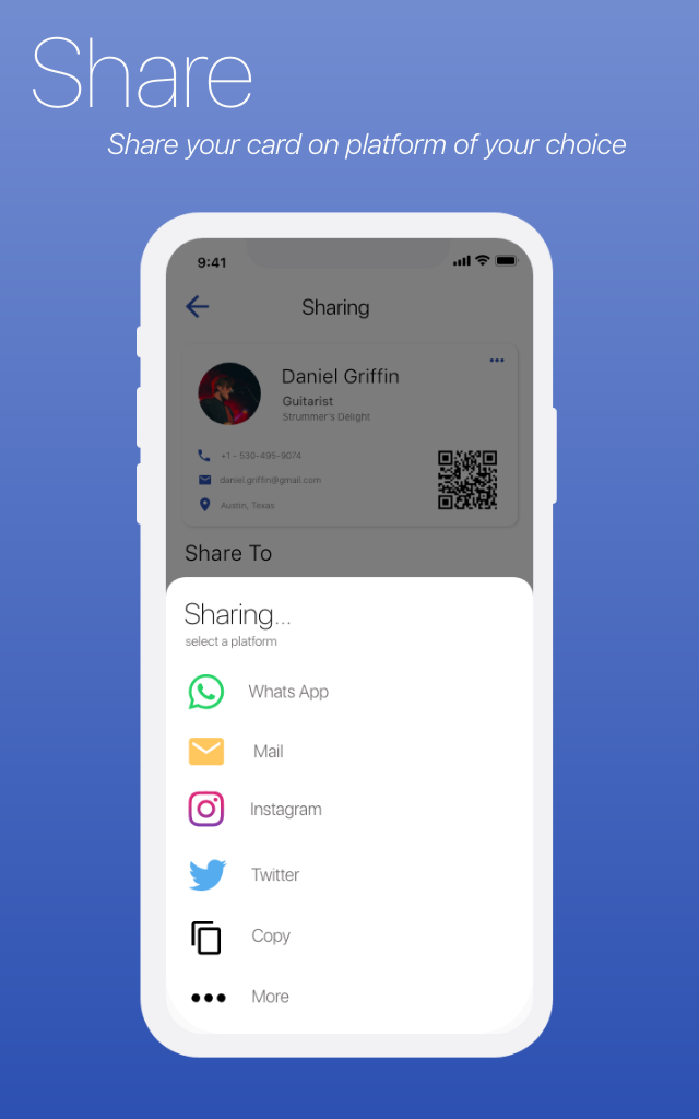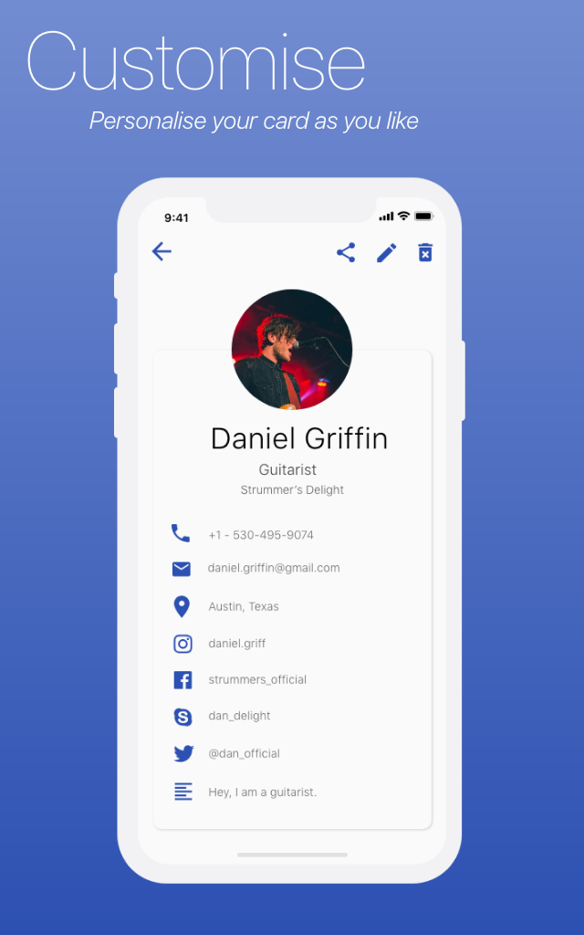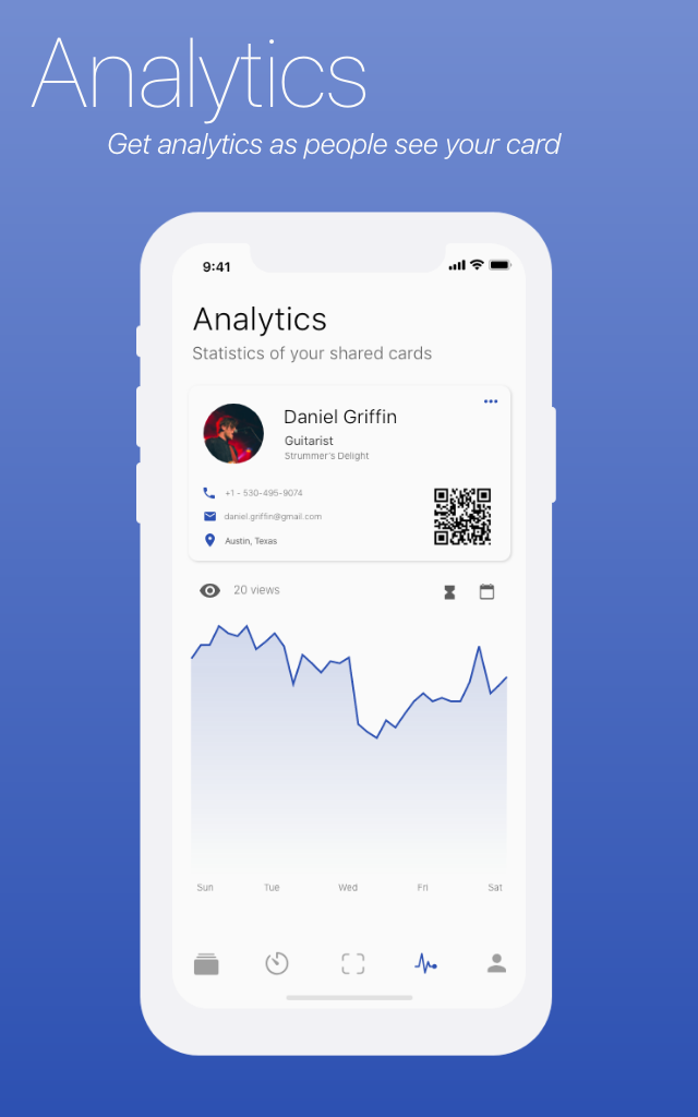 kcards is a one stop replacement for paper cards. kcards helps you to easily share your cards with other users and get real time analytics on the shared cards Features: Create Multiple Cards: create multiple cards as your network increases Personalize your Cards: add custom details like Instagram, Twitter to your cards We keep your data secure: unlike other apps we don't "recommend" your card data to others, you control how you share your cards Use AutoFill : Feeling lazy? quickly scan a card and witness our machine learning algorithms fill the details for you Get real-time analytics: See how many people saw your cards and get real-time analytics/views Offline Mode: Can't get a stable signal? Don't worry you can still share your cards without any worry Share as you like: Share on any platform you desire Timeline: Generates your sharing timeline as you go on your card sharing adventure Unique Identity: Your card will have a unique id so that you can stand out in the crowd