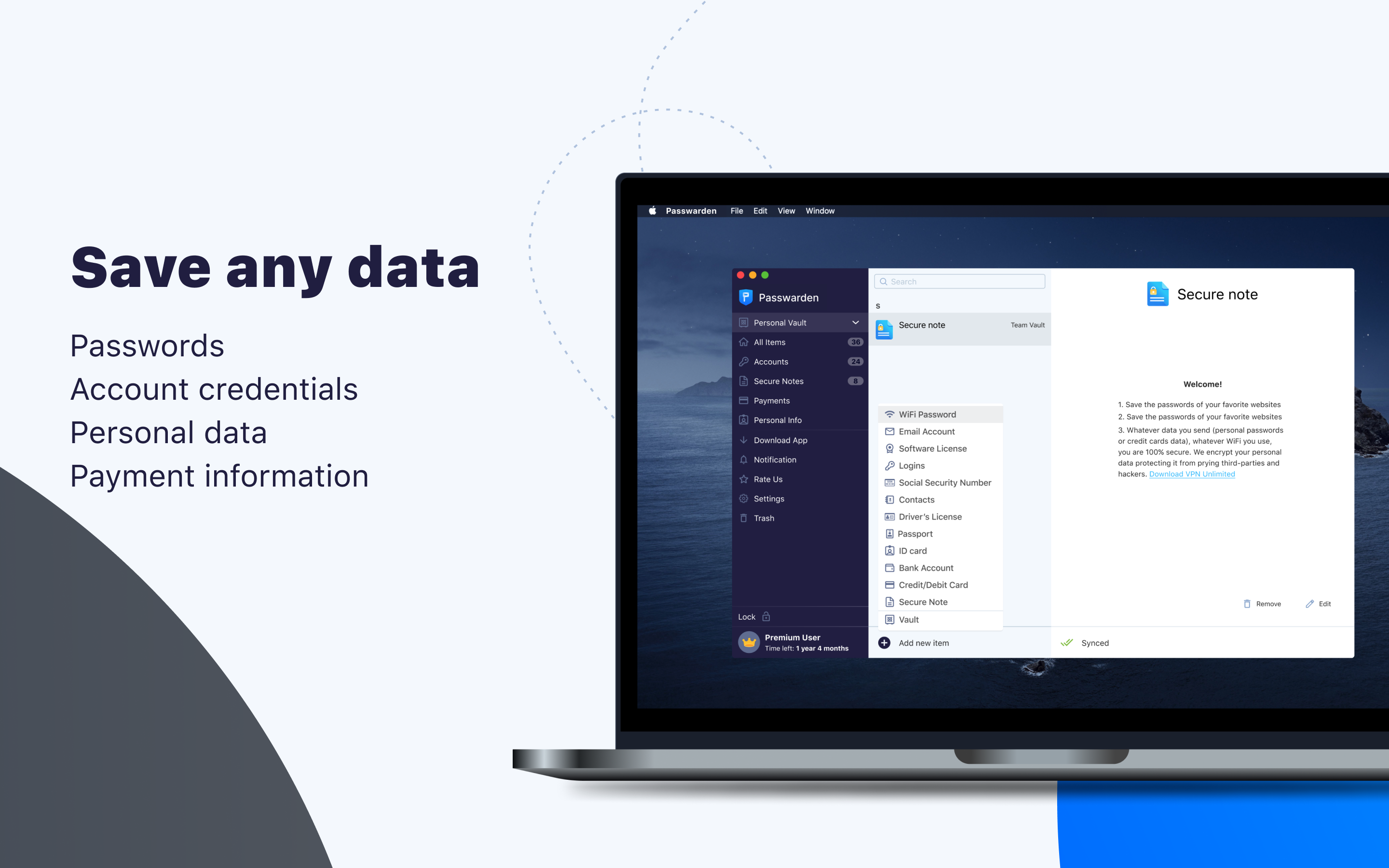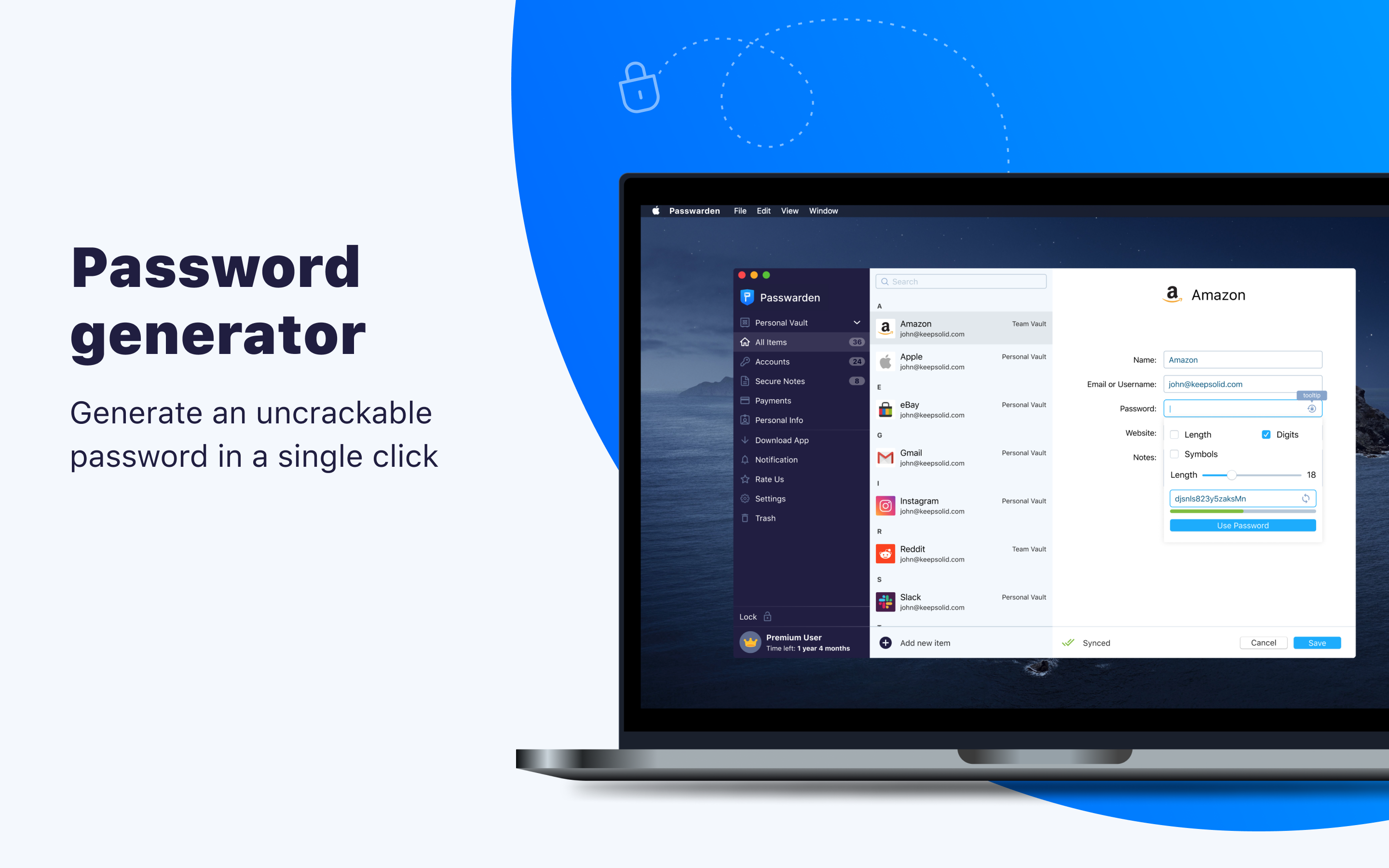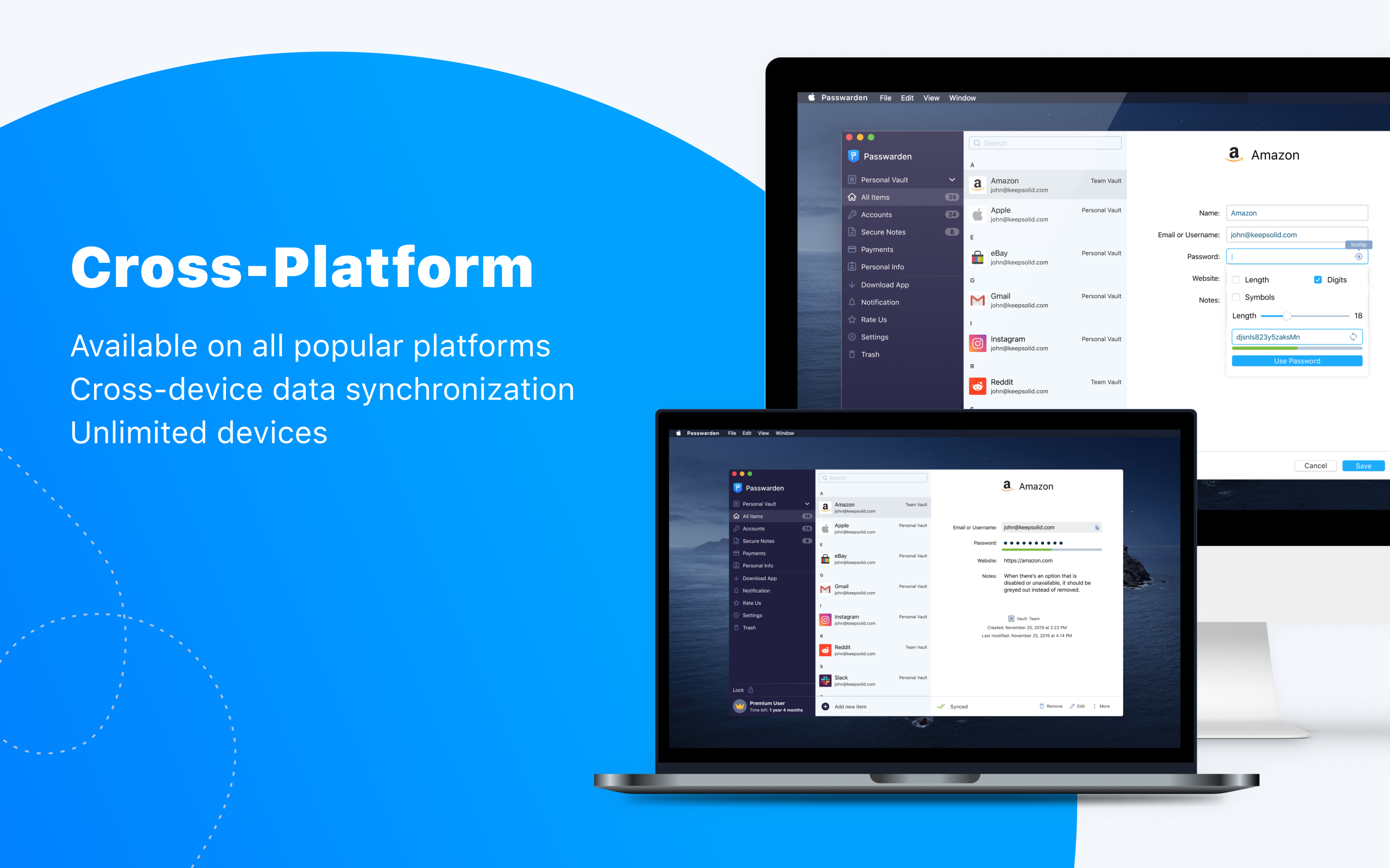 With Passwarden by KeepSolid, you can be sure your passwords and other important data are completely safe. Auto-fill login details, generate strong passwords, protect your stored data, and access your passwords from any device.