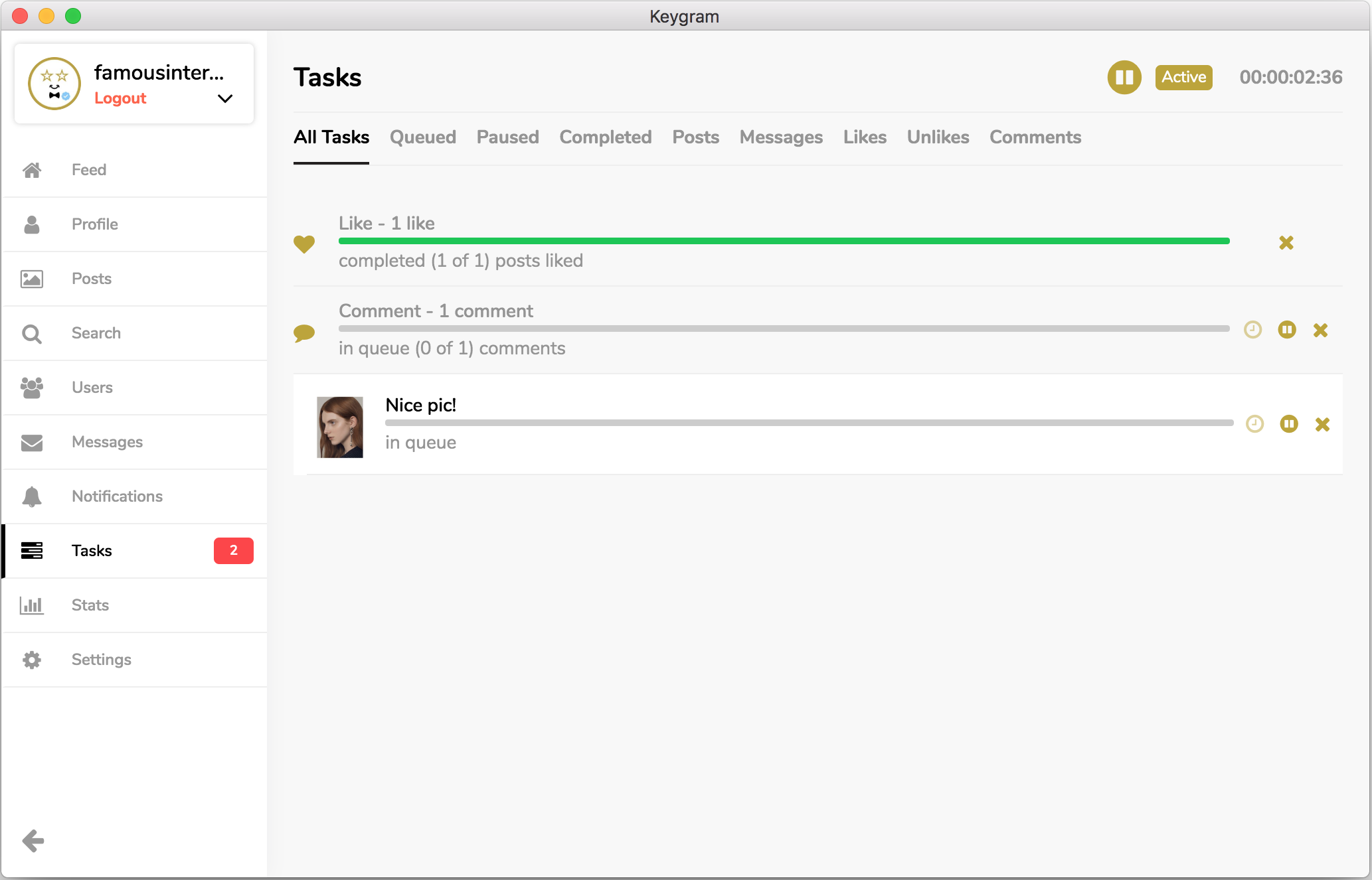 Keygram is an automated and task oriented Instagram marketing tool which increases instagram user engagement.