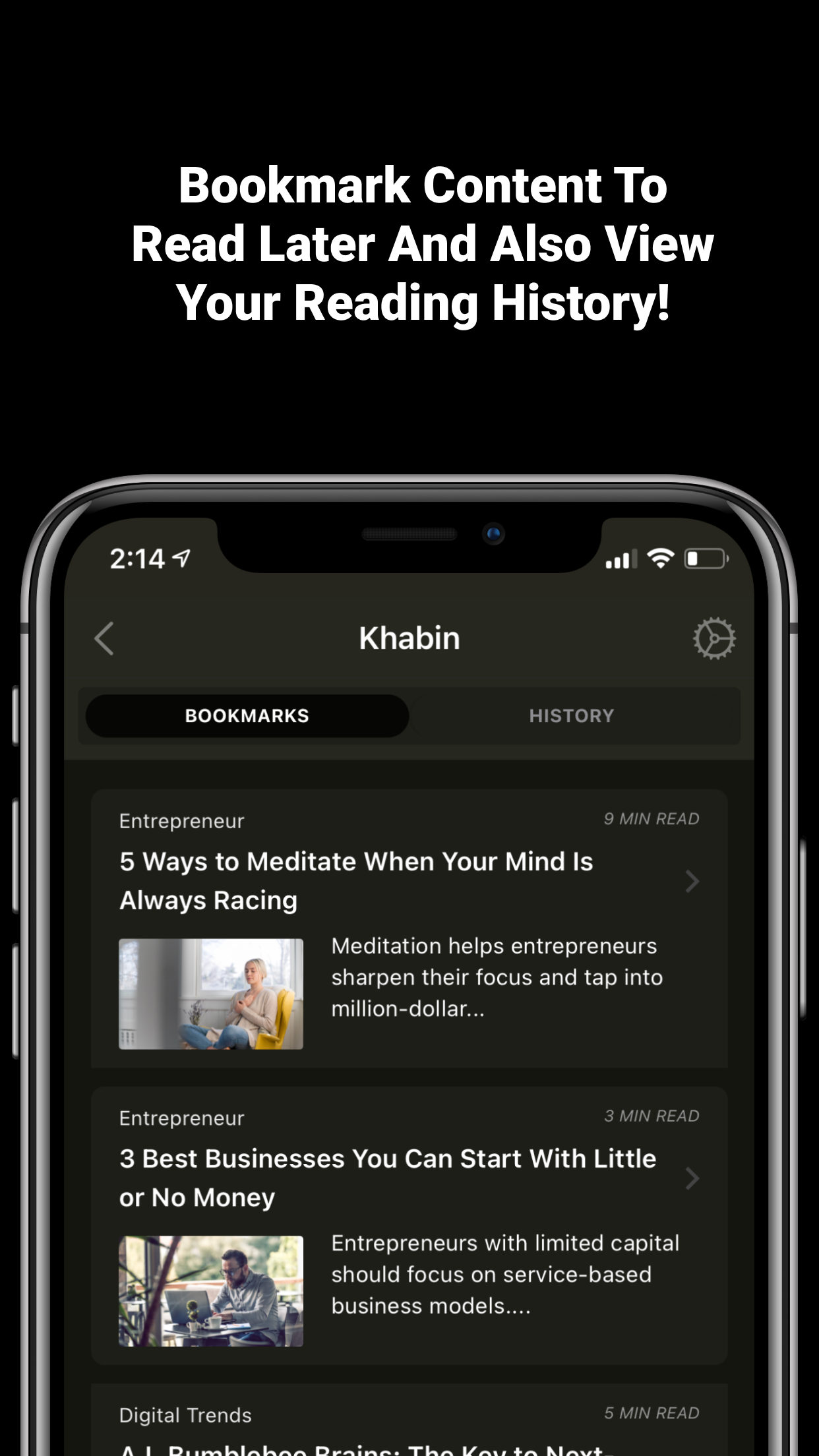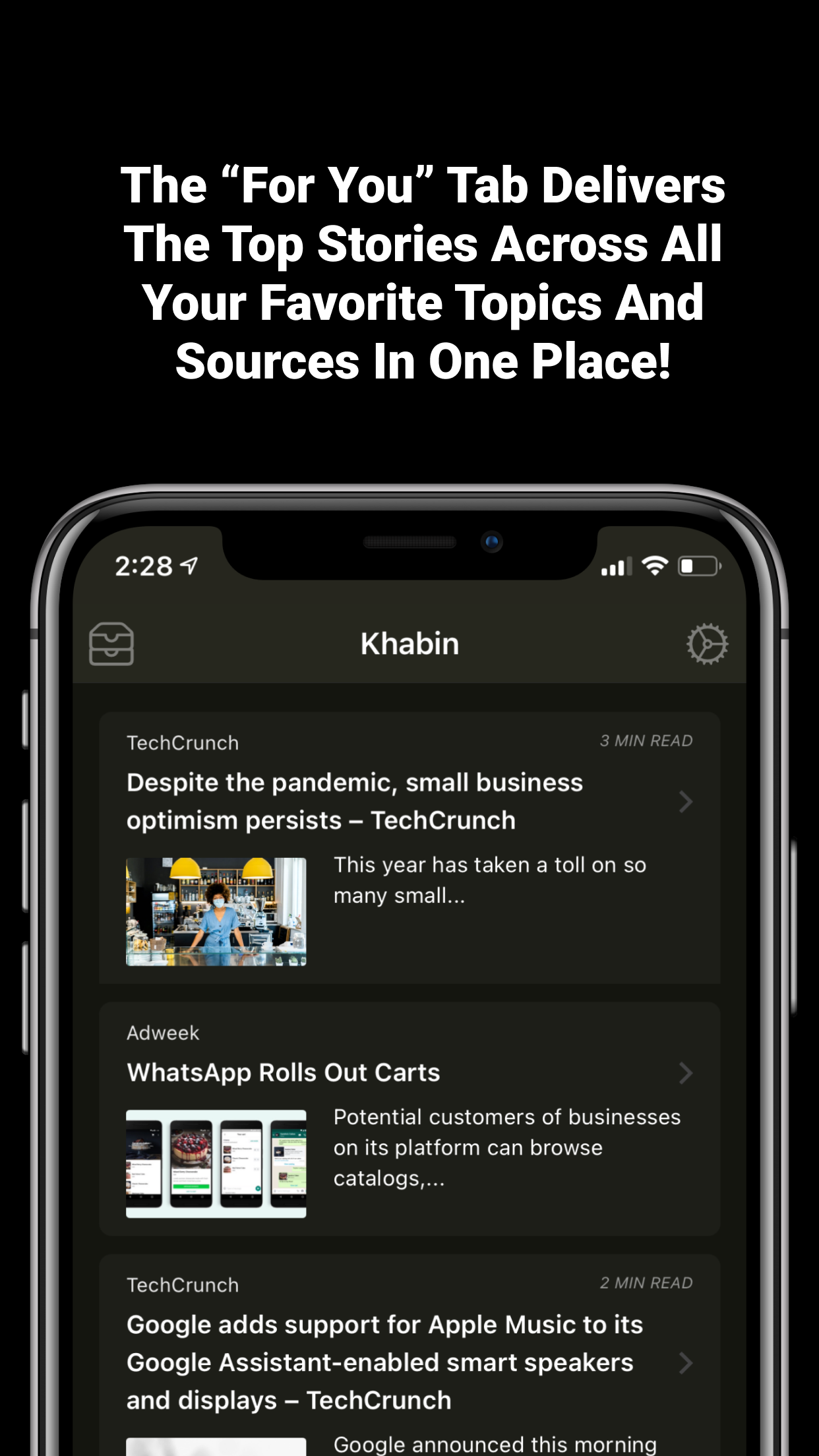 Khabin cuts through the noise. We aggregate content from 1000s of sources into a single, digestible feed, especially for you. Whether it’s Breaking news, Long Form or Editorial content – Khabin will analyze and dissect the content; identifying facts from expert sources and provide a focused overview, saving you time and ensuring you only have the correct information. With Khabin’s personalized recommendations, you have the solution to information overload. Key Features - Read news in a clean predictable format - Review related articles from across multiple sources - The For You tab delivers the top stories across all your favorite topics and sources in one place - Focused around collecting just the facts - Consolidation of duplicate headline - Bookmark articles for later Other Features - Share articles quickly - Up vote to see more - Down vote to see less - View perviously read articles - View article read time - View publications and their articles - Play videos from within the app - Tap to zoom any image - No account needed