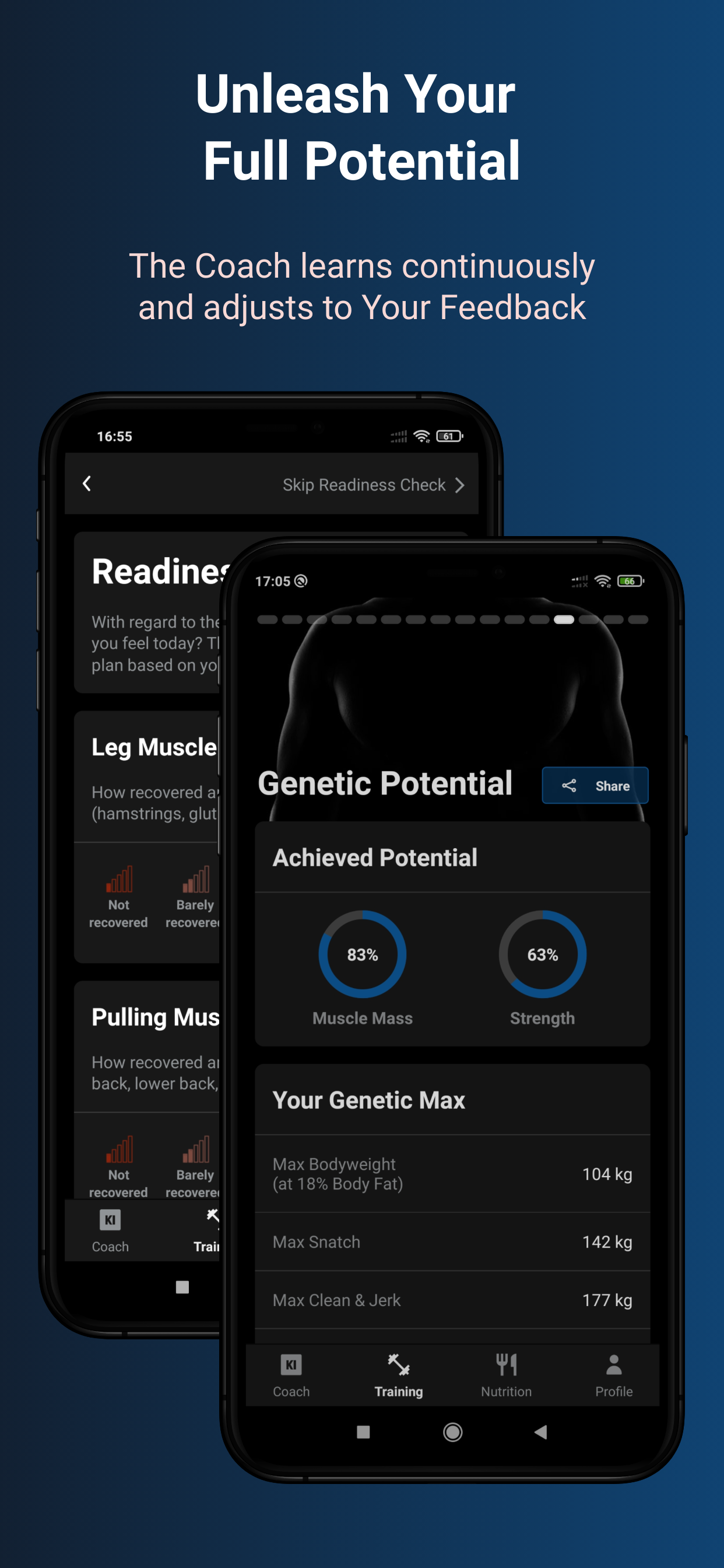 KI Coach is a free coaching app for strength athletes - be it Olympic Weightlifting, Powerlifting, Bodybuilding, CrossFit or Home Workouts. In addition to your workouts, KI Coach also assists you with nutrition planning. With the help of artificial intelligence, all plans are custom tailored to the individual user - this includes optimized exercise selection, training volume, frequency, intensity, periodization strategy and adjustments to your weaknesses. Furthermore, the app is continuously learning by anaylizing your performance and feedback.