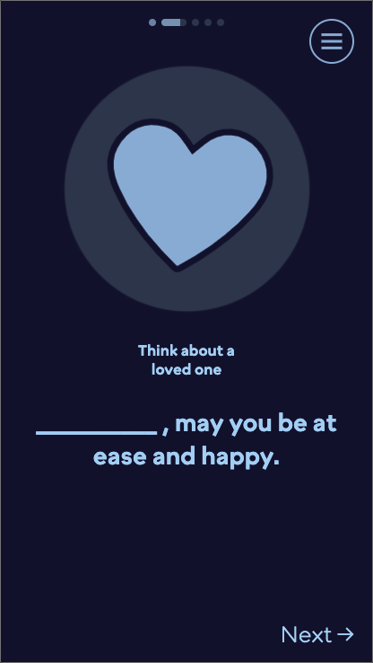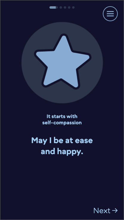 Create a kinder world. Learn loving-kindness meditation at your own pace with this sound-free compassion building mediation. Free to use or download this pwa.