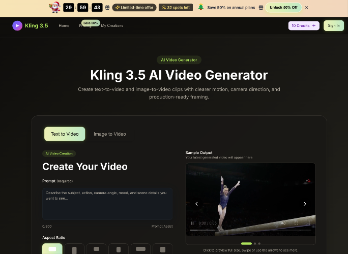Create Kling 3.5 video clips from prompts or reference images. Try free credits, then upgrade for more renders.Create Kling 3.5 video clips from prompts or reference images. Try free credits, then upgrade for more renders.Create Kling 3.5 video clips from prompts or reference images. Try free credits, then upgrade for more renders.