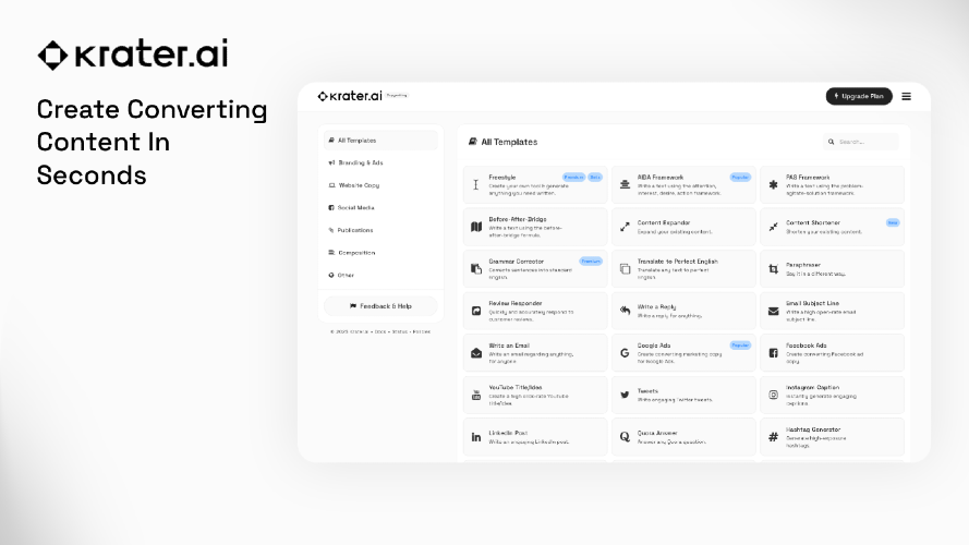 AI is moving fast. Always staying on top and having the right tools for the task at hand can be confusing, expensive, and difficult to manage; that's why we've created Krater.ai: Your "One-Stop-Shop" for all tools AI. With Krater.ai, you'll be able to Generate Copy for an ad, Transcribe your audio to text, Chat with AI to get new ideas on a topic, Create beautiful images for your Twitter, Turn text into a realistic voice, Generate code for your new side-hustle, and Create videos for your YouTube channel + So, so much more.