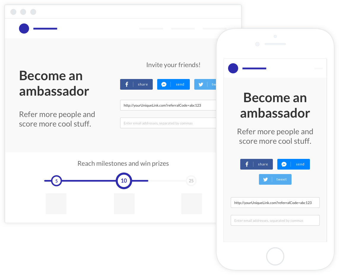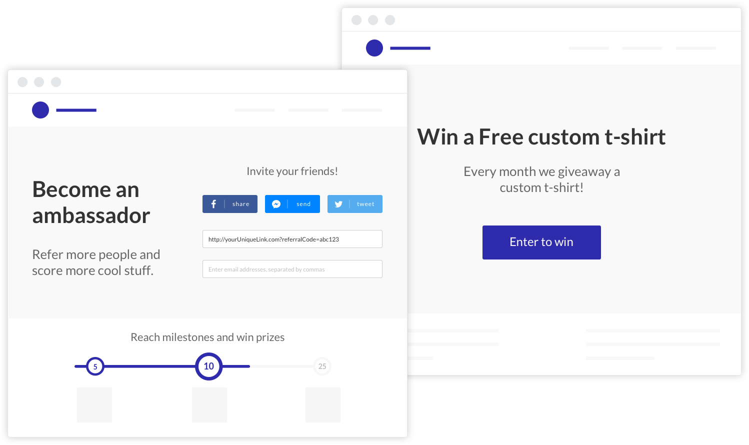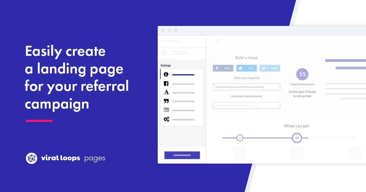 Introducing a super simple way to create beautiful landing pages that make it easy for people to invite their friends. Highlight your referral campaign, run a giveaway, build your pre-launch list and anything in between. Our 2 flexible templates give you the chance to create and publish landing pages that work with your Viral Loops campaign and for your business—don't forget that they're absolutely free. With Viral Loops Pages: 1. You don’t need coding skills, just plug and play. 2. You can preview your campaign, hit preview and see how your referral campaign would look like on a page. 3. Go from concept to publish in minutes (seriously!)