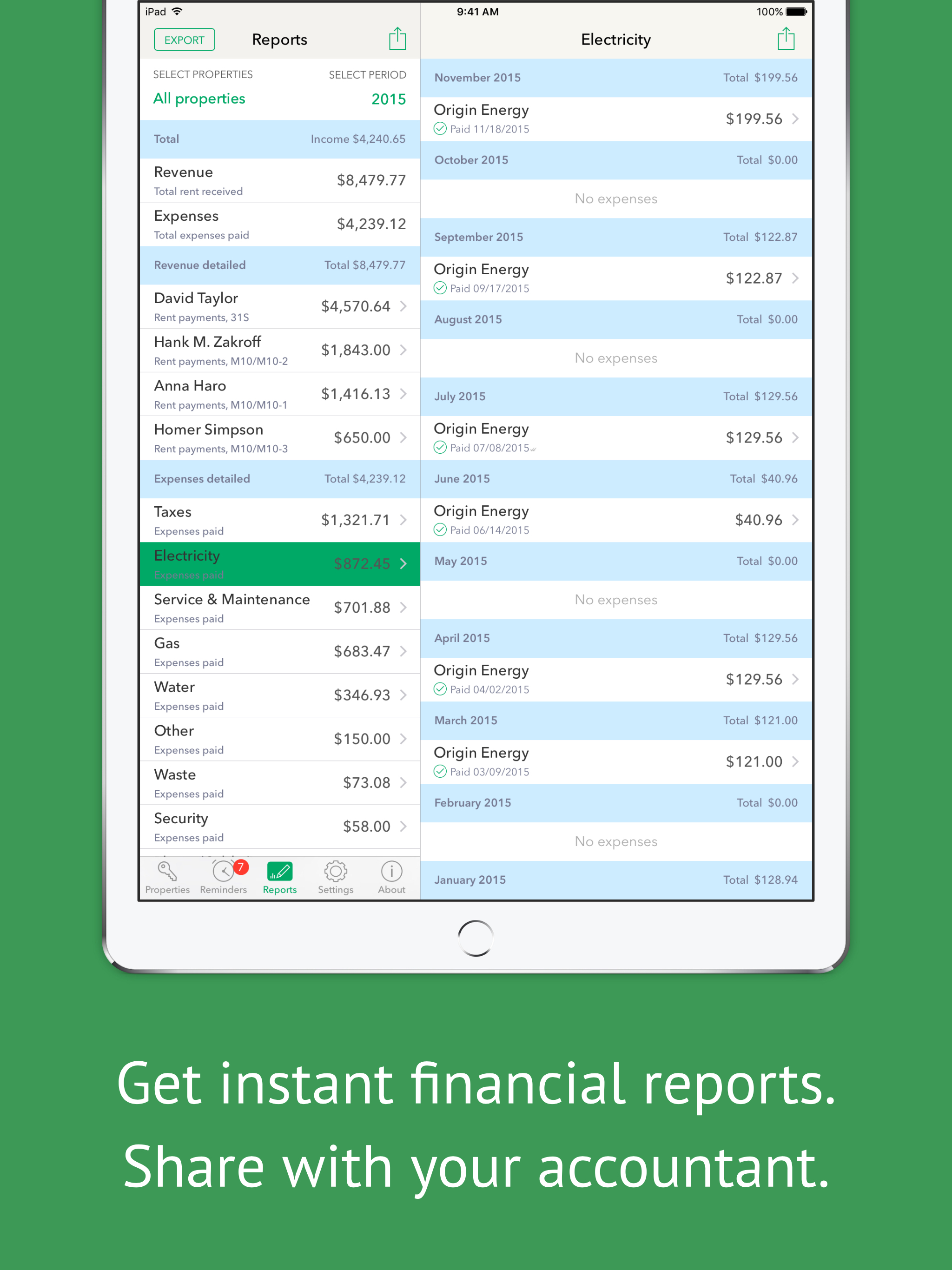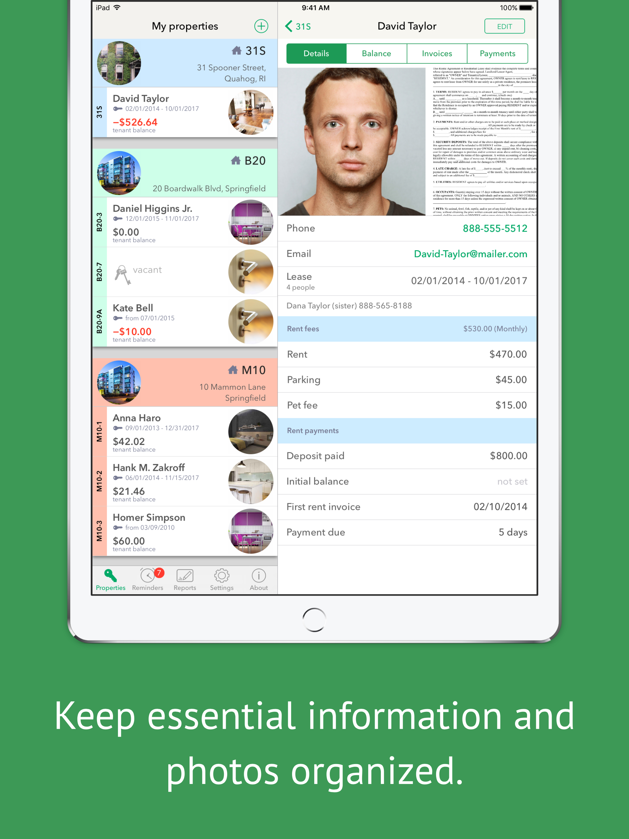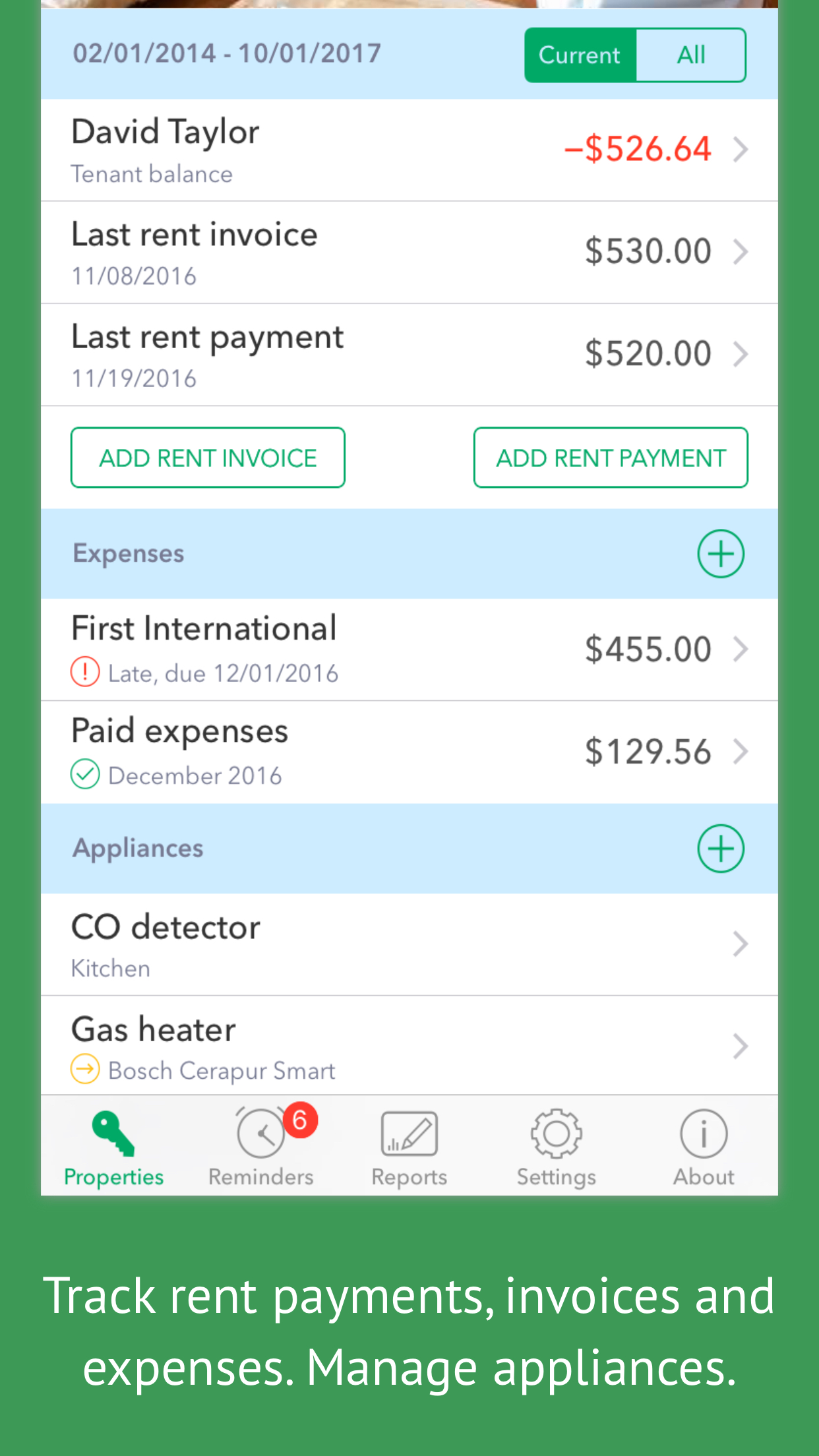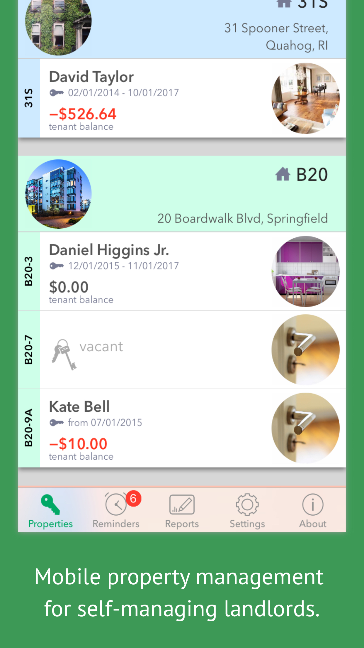 Integrated with iPhone/iPad camera, email and messaging features, Landlordy lets you become more agile and better organized landlord. Manage your private landlord business - track tenants, rent payments, invoices and expenses, manage appliances and maintenance records, keep track of tenant balance and payment history, get instant financial reports and useful reminders to be an even better landlord. Features: - Manage rental business expenses, keep related photos and documents organized - Create and send rent invoices to tenants via email or messages - Track rent payments, send payment receipts to tenants - Keep track on tenant balance, payment and invoicing history - Manage appliances and appliance maintenance/safety check records - Reminders for your daily landlord duties - Get instant financial reports, share data via Dropbox with your accountant Always up-to-date in your pocket or purse!