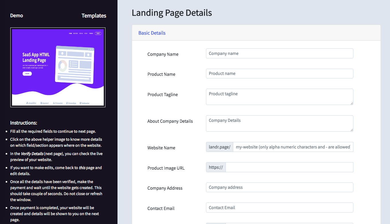 Hi, I'm Sunil! I'm very excited about Landr taking off today. Landr is a landing page creator which helps you create websites for your products in minutes. With growing internet popularity everyone wants to have a digital presence and having a website for their product is a must before they launch. Through Landr, i'm trying to make it easy for everyone to create landing page websites for their products with ease. Landr is very different from the traditional website builders you see on the market today. All these website builders are mostly drag and drop solutions. Even though they provide you with all the tools needed to build websites, unfortunately not everyone is creative enough to build good websites using these tools. Landr solves this problem by providing users beautiful list of templates to choose from and not having to worry about customising them at all. Users just have to select a template, fill all the inputs needed for that template, check the live preview of their website with the current details and then just create it by the click of a button. It's that simple. In the first version of the product I'm providing SaaS templates. In the next version the plan is to provide templates for other category of users like freelancers who want to showcase their skills,students who want to showcase their portfolio to everyone on the internet. I hope Landr eradicates one problem from this world. Hit that upvote button if you like my product and show me some love :) I'm happy to answer any question you guys have. Connect with me on twitter to join the journey of Landr: https://twitter.com/sunilc_