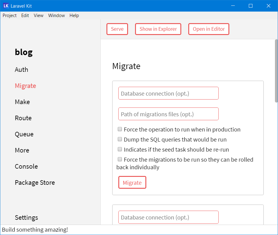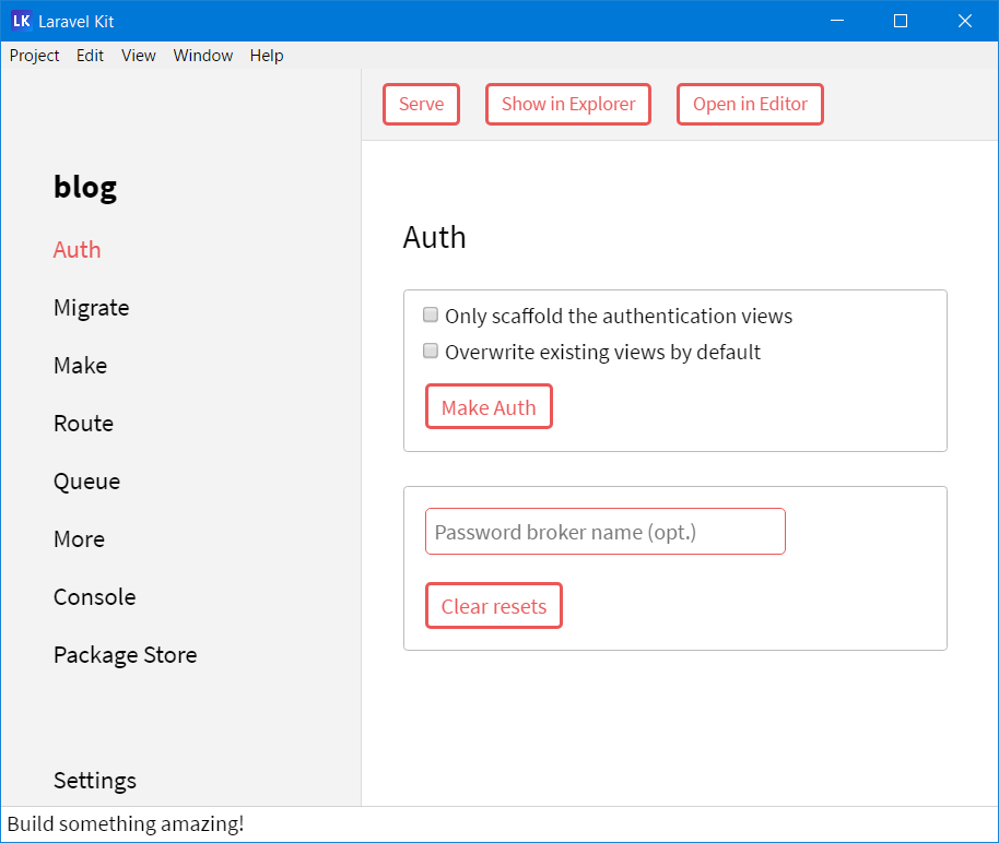 Laravel Kit is an open source application which can execute almost all Laravel Artisan commands without using any terminal. Laravel is now one of the best PHP framework. When beginners start learning Laravel, they may get using artisan commands a quite bit harder. But what about an application which does this work without using any terminal or bash like stuffs? within a nice UI? Laravel Kit does exactly the same thing.