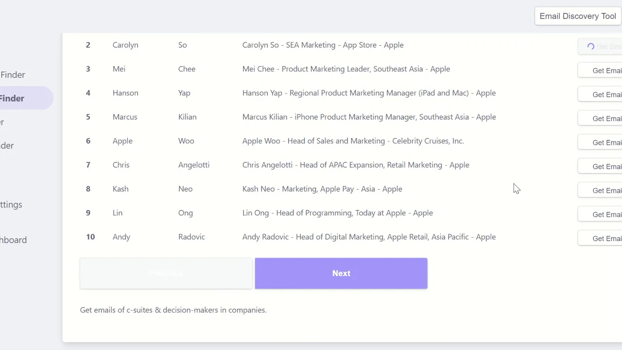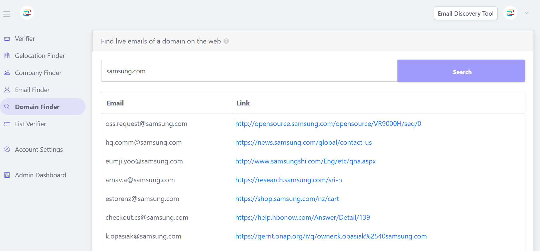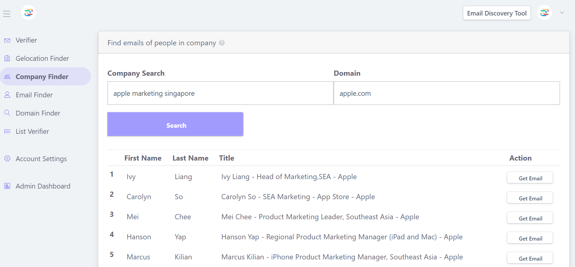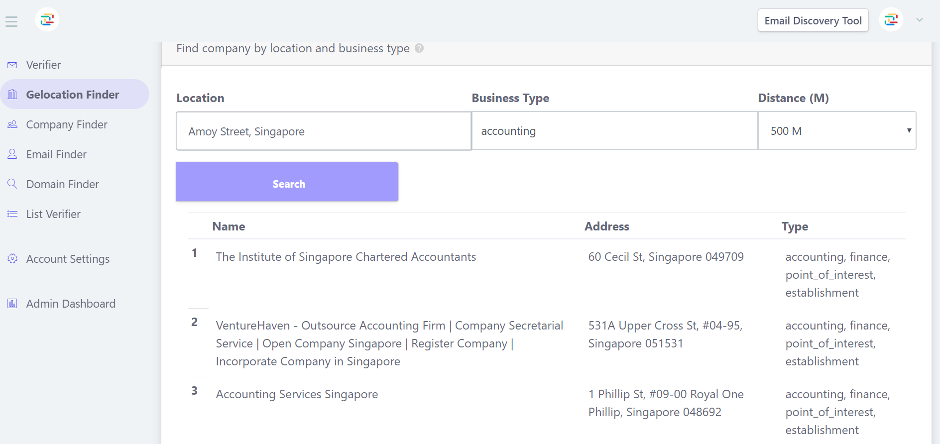 Email Discovery Tool makes your outbound effort easier and efficient in reaching out to both companies and executives by - getting you verified emails of CEOs filtered by geolocation, business type and company names.