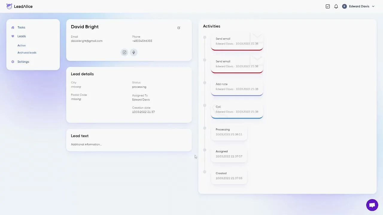 With LeadAlice, you can stay in touch with your leads, no matter where they come from. It is an SaaS solution that helps you to manage sales leads and convert them into paying customers through a smart workflow. With LeadAlice, you will never lose any leads again.