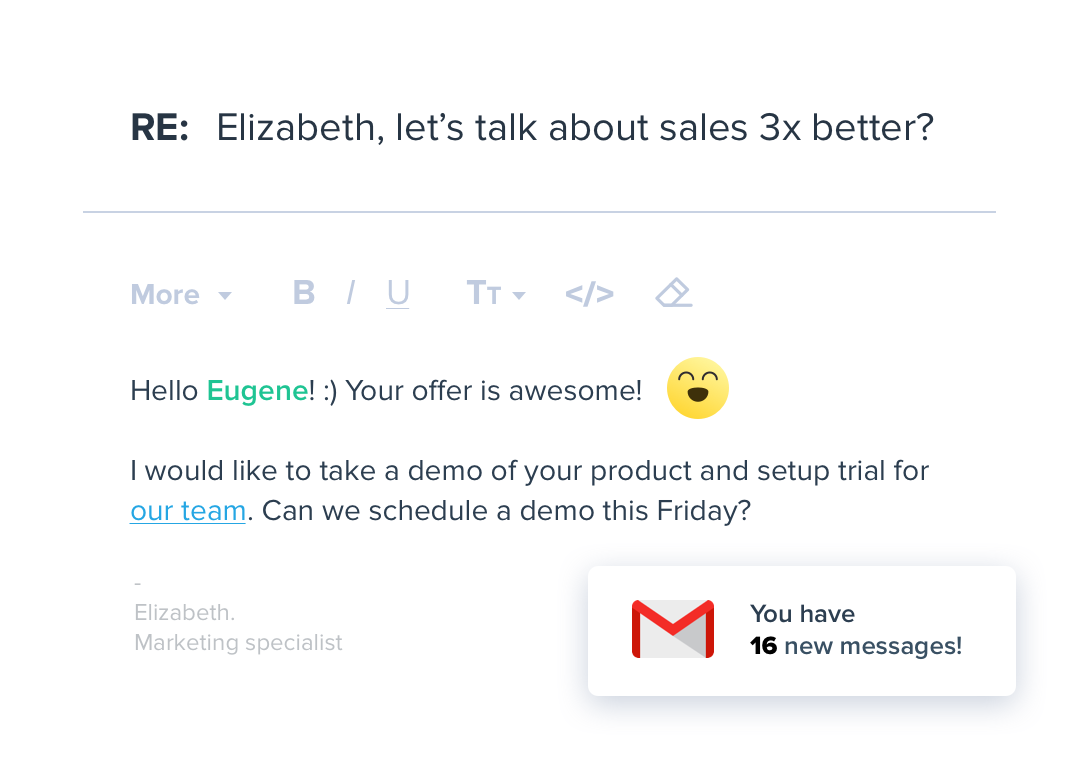 Gmail. But with a superpower. Be the first to use it! Free till 2018 For now, we’re ready to invite everyone to the 2.0 free Beta app. It is completely functional and ready to use. Be among those first 500 users to send 200 emails with the app and get the Starter plan at no charge for three months.