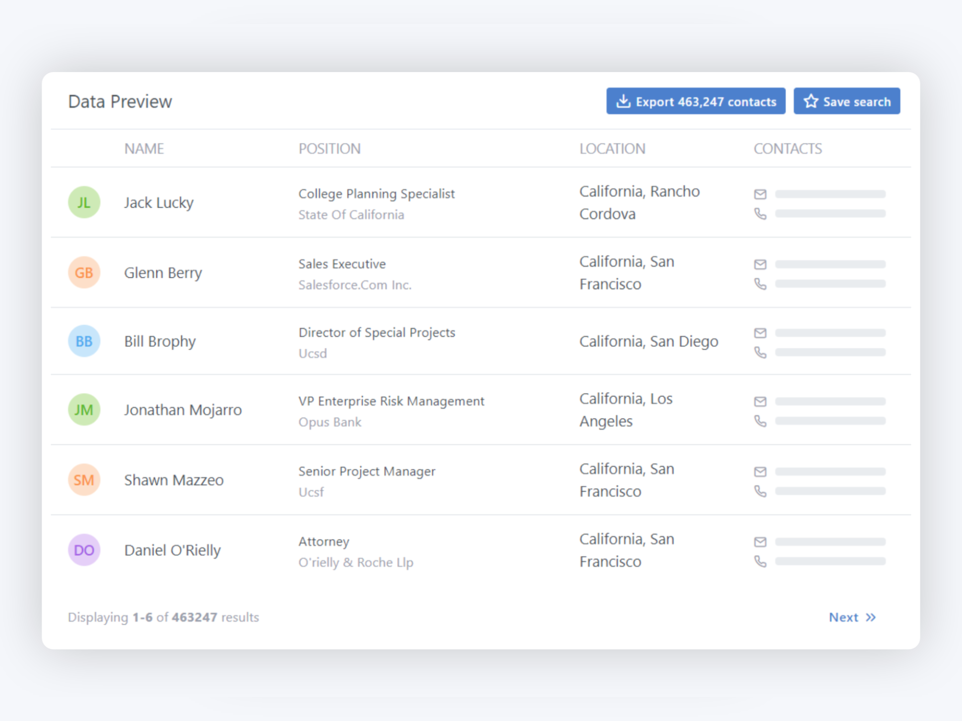 Want to buy leads for your contact database? LeadGibbon is all you need to find reliable lead data, in one elegant tool. Discover new leads based on title, location, industry, and firmographic data. When you’re done, export your list in a single click — or save it and share it with your team. LeadGibbon is the fastest way to find decision-makers with purchasing power. We update the LeadGibbon database in real-time to provide accurate lead data. Need to build an exceptional B2B email list? Sign up today and get 100 free leads.