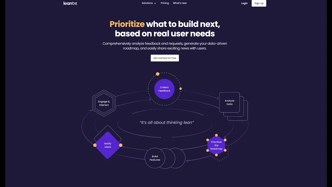 Leanbe is a smart tool covering all the 3 steps in the product development cycle: feedback collection, roadmap generation and user notification. Thus the full loop of data collection, analysis and planning the future actions is based on a data-driven and user-oriented approach.