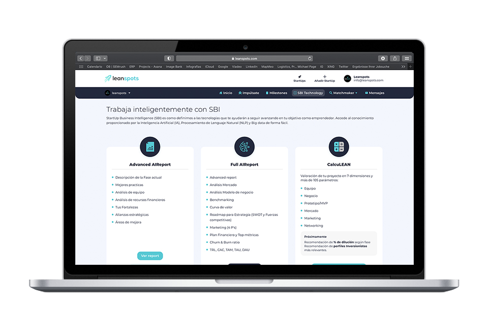 Leanspots is a hybrid Fintech & Marketplace model. Holistic platform model with proprietary tools for StartUps, Investors, Advisors, Universities and Accelerators. Leanspots bases its solutions on technologies such as AI, NLP and Big data.