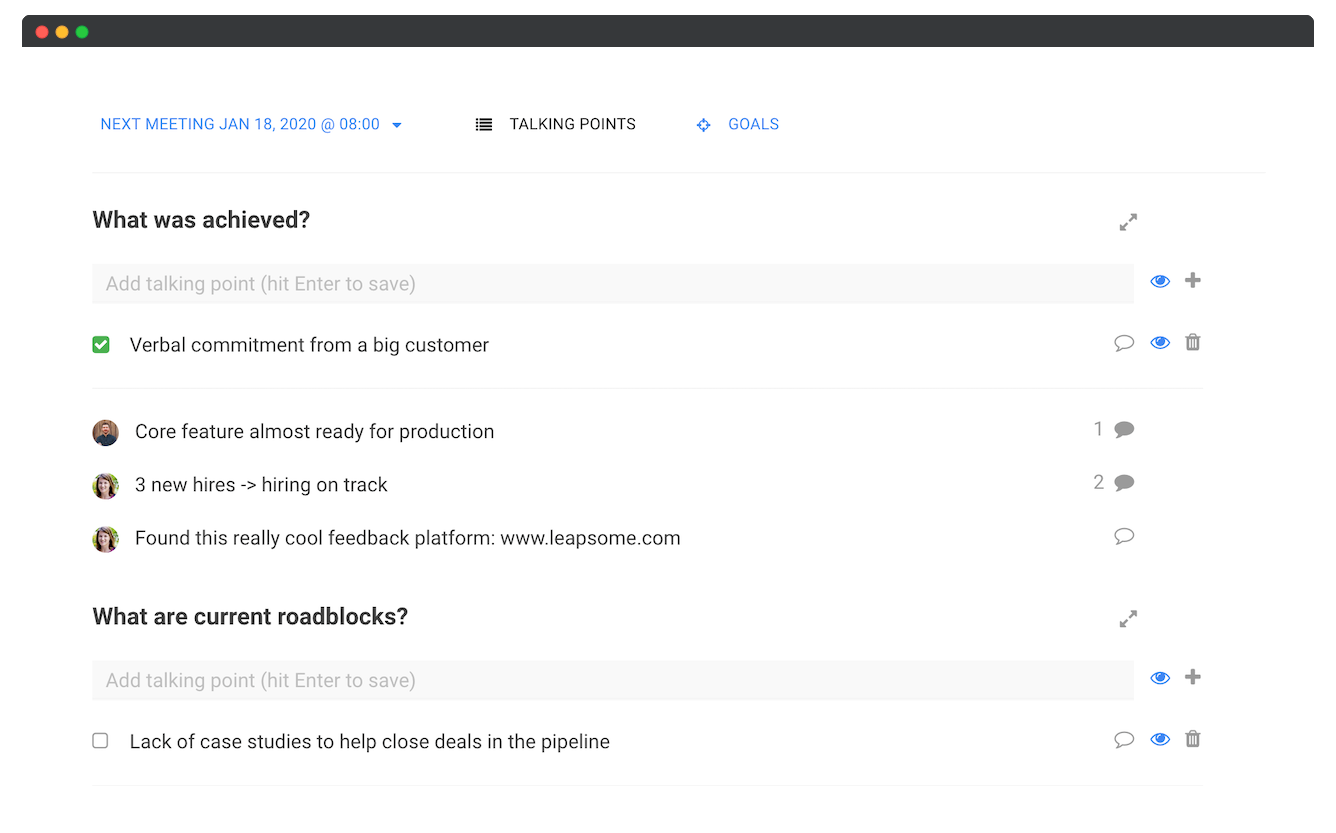 CEOs & HR teams in forward-thinking companies such as Spotify, Trivago and Babbel use Leapsome to create a continuous cycle of performance management and personalized learning that powers employee engagement and the success of their business. As a people management platform, Leapsome combines tools for Goals & OKRs Management, Performance Reviews & 360s, Employee Learning & Onboarding, Employee Engagement Surveys, Feedback & Praise, and Meetings.
