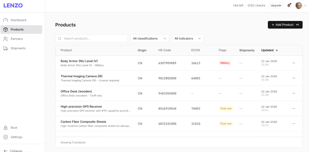 Lenzo is an AI-powered trade compliance platform built for small and mid-size exporters and importers (30–500 employees) in regulated industries — electronics, aerospace, chemicals, machinery, and medical devices. The Problem Most SMB exporters still manage compliance manually: checking partners against government sanctions lists in spreadsheets, hiring consultants at $500–1,500 per screening, or struggling with enterprise platforms that cost $200K+ per year and take months to deploy. Meanwhile, sanctions lists update daily, penalties average $200–400K per violation, and a single missed flag can halt shipments or trigger federal investigations. What Lenzo Does Lenzo automates the three core compliance workflows that consume the most time and carry the most risk: Sanctions & PEP Screening — Screen partners, customers, and suppliers against 50+ global watchlists including OFAC SDN, EU Consolidated List, UN Security Council, and BIS Entity List. Every check produces a timestamped, audit-ready report with full decision trails. Product Classification — AI-assisted export classification maps your products to HS codes, ECCN, and dual-use control lists with 95% accuracy. Misclassification is the #1 cause of denied shipments and regulatory penalties for SMB exporters. Regulatory Monitoring — Real-time alerts when sanctions lists update, new trade restrictions are announced, or a previously cleared partner gets flagged. No more manually tracking changes across dozens of regulatory sources. Destination Risk Intelligence — Country-level risk profiles covering embargoes, export license requirements, and restricted end-use indicators so you know before you ship. How It Works Sign up, connect your data, and start screening in under 5 minutes. No IT department needed, no implementation consultants, no demos required. Everything runs through a unified dashboard where products, partners, and destinations live in one compliance workspace. Pricing & Access Three tiers based on screening volume: Essentials ($99/mo), Advanced ($349/mo), and Complete ($899/mo). All plans include a 14-day free trial with full functionality. No setup fees, no annual lock-in. A free sanctions checker is available on lenzo.ai with no account required. Lenzo provides compliance intelligence and flags risks — your team makes the decisions.