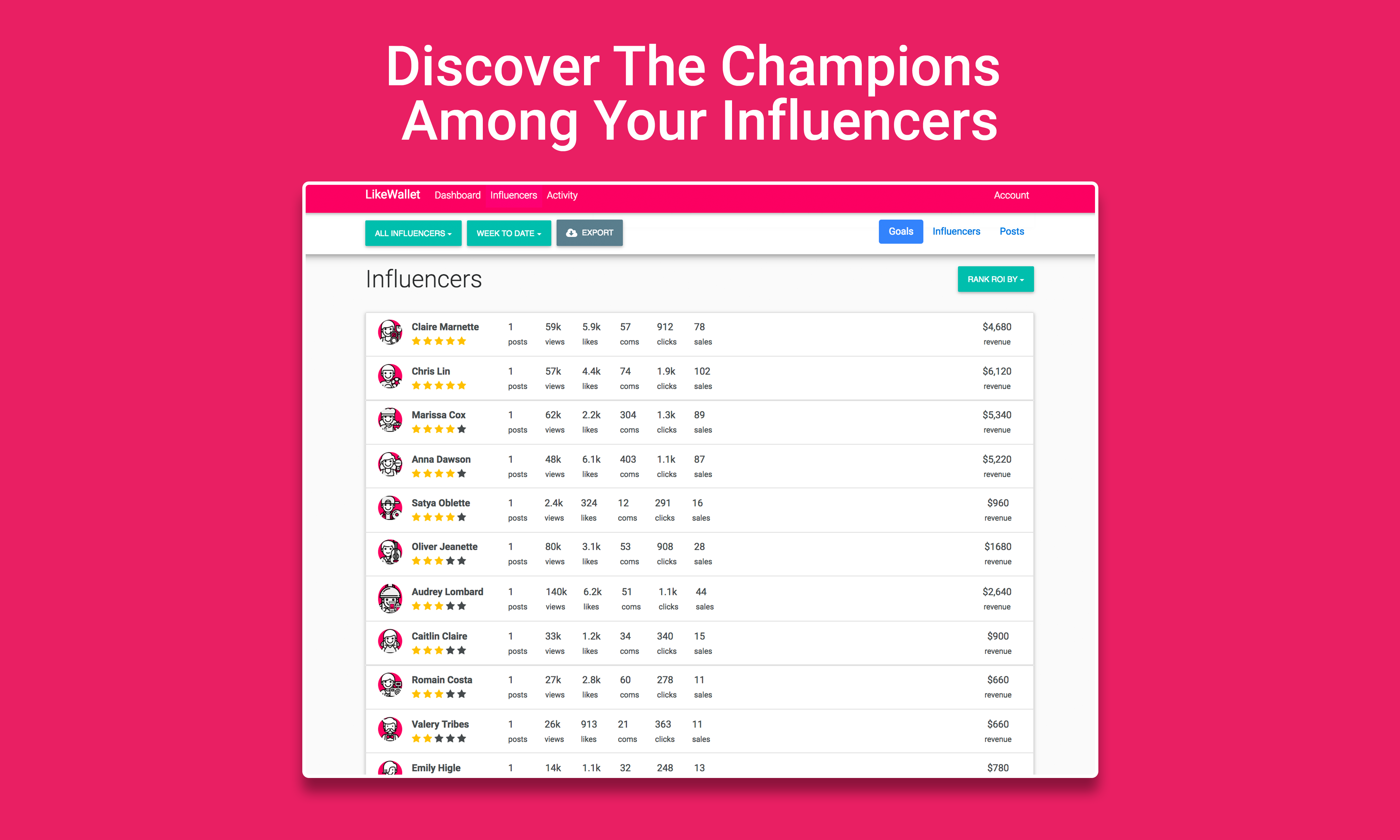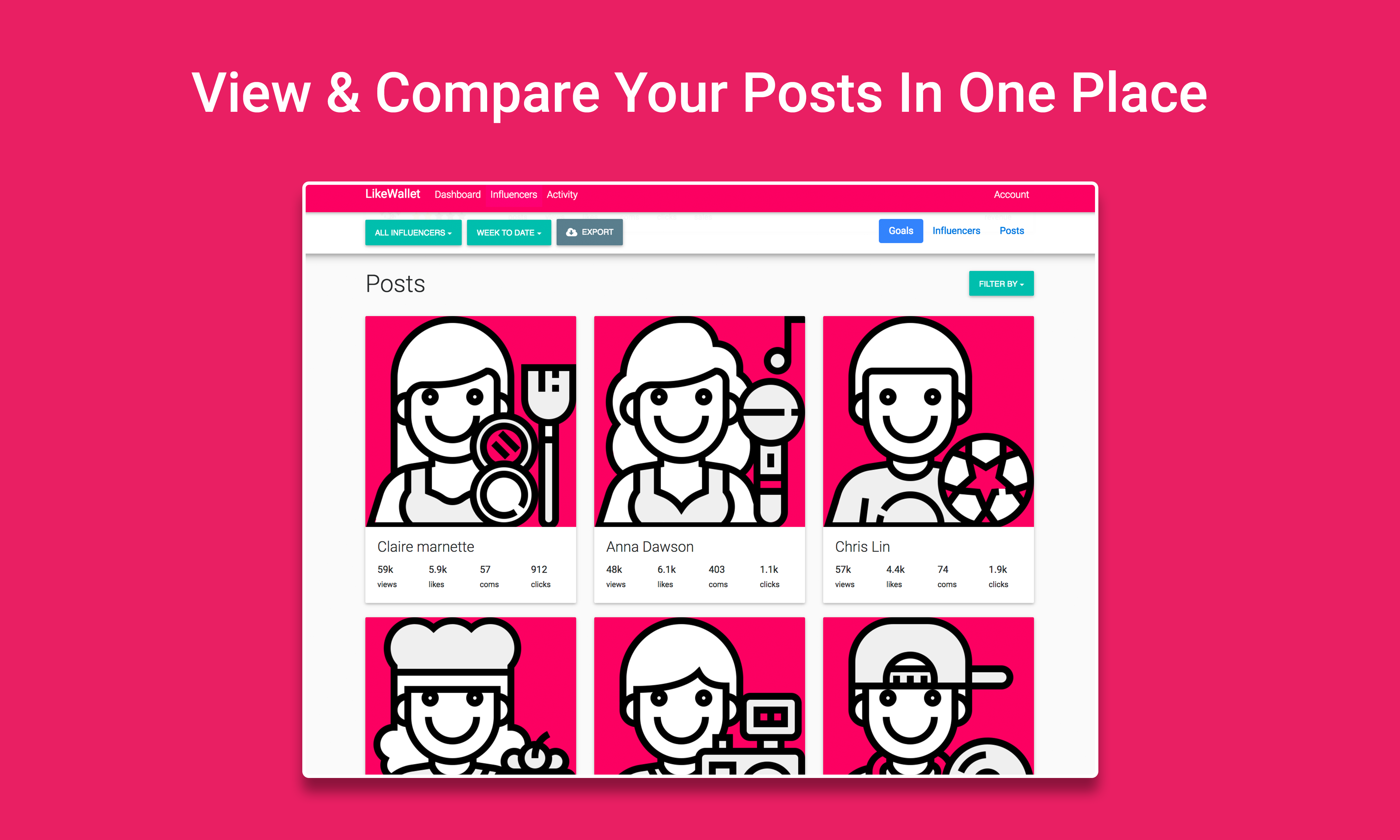 LikeWallet provides analytics and insights about the performance of your influencer marketing campaigns. See how many likes, comments, clickthroughs and online sales your influencers are generating in real-time, and get insightful information about the audience that they are reaching (age, gender, location, interests...). We are looking for people to try our Beta for free! It will allow you to track the performance of any influencer, including: their average number of likes/comments per post, and the demographics of their audiences (location, gender, age, interests...). Please sign up on likewallet.io and we will send out your Beta invite. Cheers!
