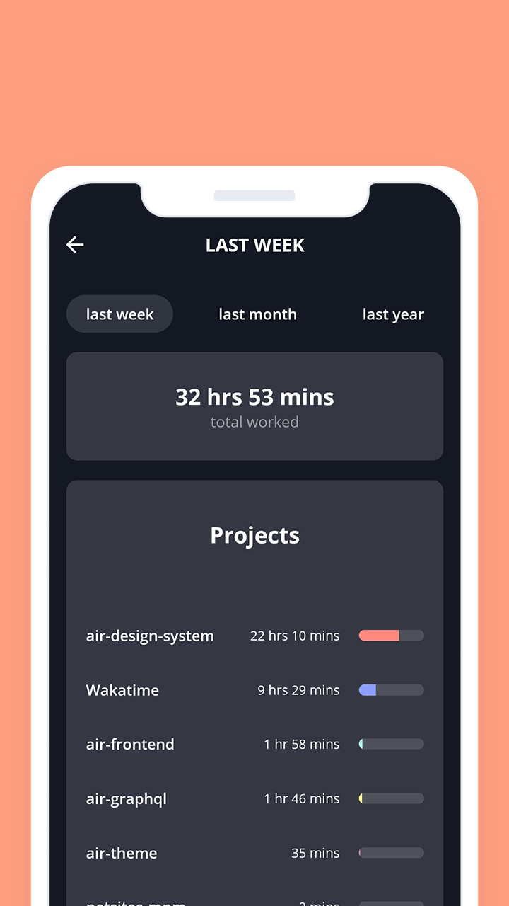 From the Swahili for the word "When". This app gives you an insight about your coding-behaviour using the Wakatime api. Information like: How long you worked today, in the past week, the past month, the past year and even in your whole lifetime Which projects you worked on, for how long? Which languages did you use, which device(s), platforms, .. You can even check your leaderboard and view some details about others and a lot more .. This all beautifully packed in a clean mobile application.