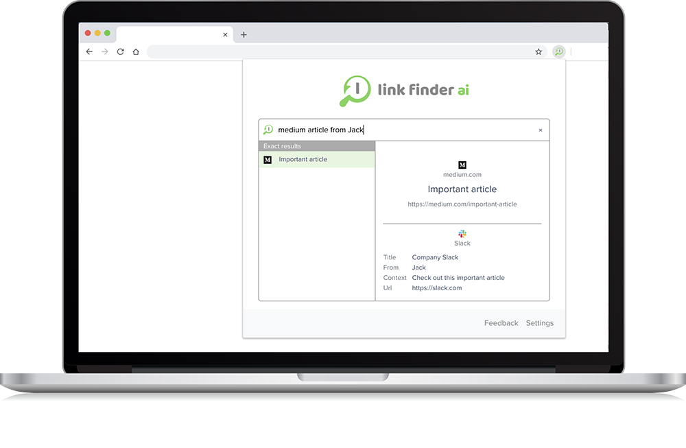 Search for your important links in your emails and messages with our AI-powered search. Link Finder ai automatically saves your important links, no more messy and unorganized bookmarks. No more frustrating search for important links in emails and messages.