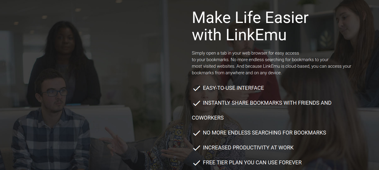 In Your Office Getting a team on the same page is difficult no matter the size of your working environment. Having access to the same online resources is crucial for productivity, achieving goals and making deadlines. LinkEmu can provide your team with sharable structure for storing bookmarks. Get your team on track and working together today with LinkEmu Business. As research and due diligence becomes a bigger part of your projects, it's important to have an accessible, organized system for saving places on the web you'll need again in the future. LinkEmu makes getting back to important pages and documents easy. For a mere 97¢ a month you will save countless hours of searching fo Share Your Favorite Places on the Web. Build libraries of your favorite places, businesses, news sites, or anything else you can find on the internet. Organize and categorize all your frequently visited websites, then share and display them on your profile, or keep them to yourself with a private profile.