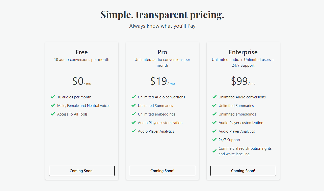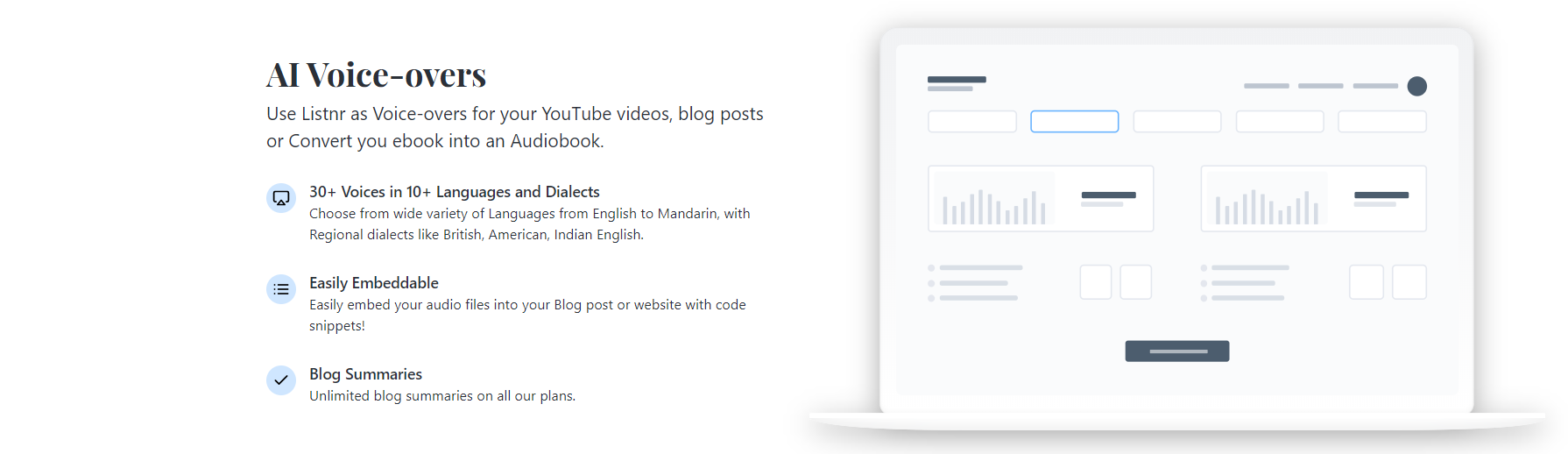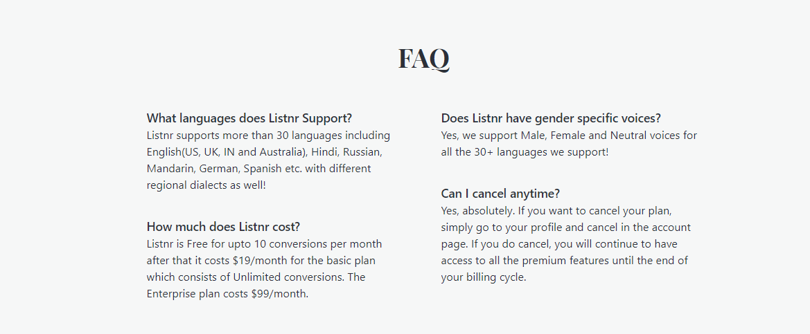 Listnr is a High Quality audio as-a -service solution, with a variety of use cases from Blog post to podcast conversion, eBook to audiobook and other voiceover purposes, Listnr uses Cutting edge Speech Synthesis Text-to-Speech algorithms to deliver the best and most human like sounds.